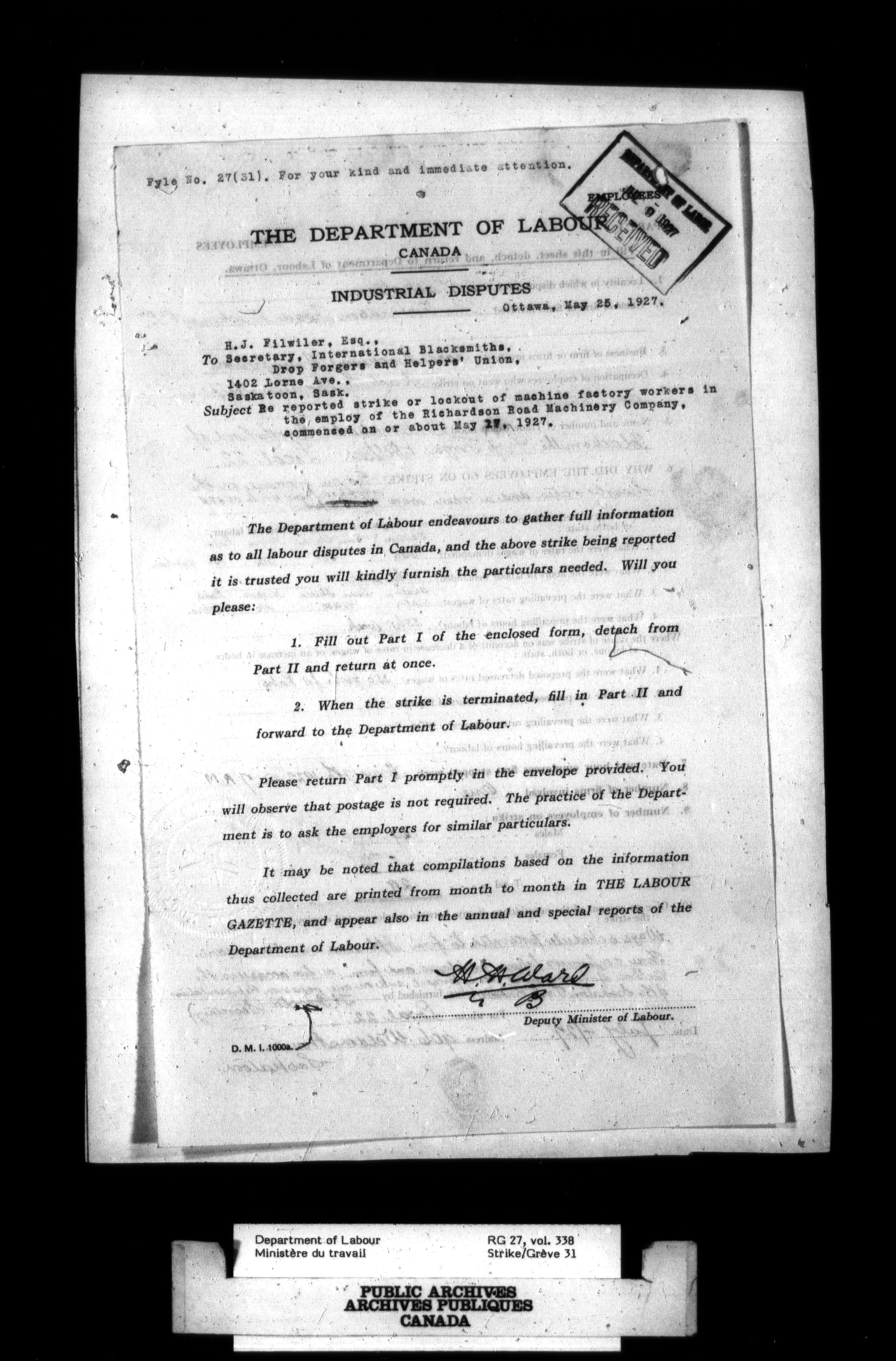 Department of Labour, Economics and Research Branch : Strikes and lockout files - 2750