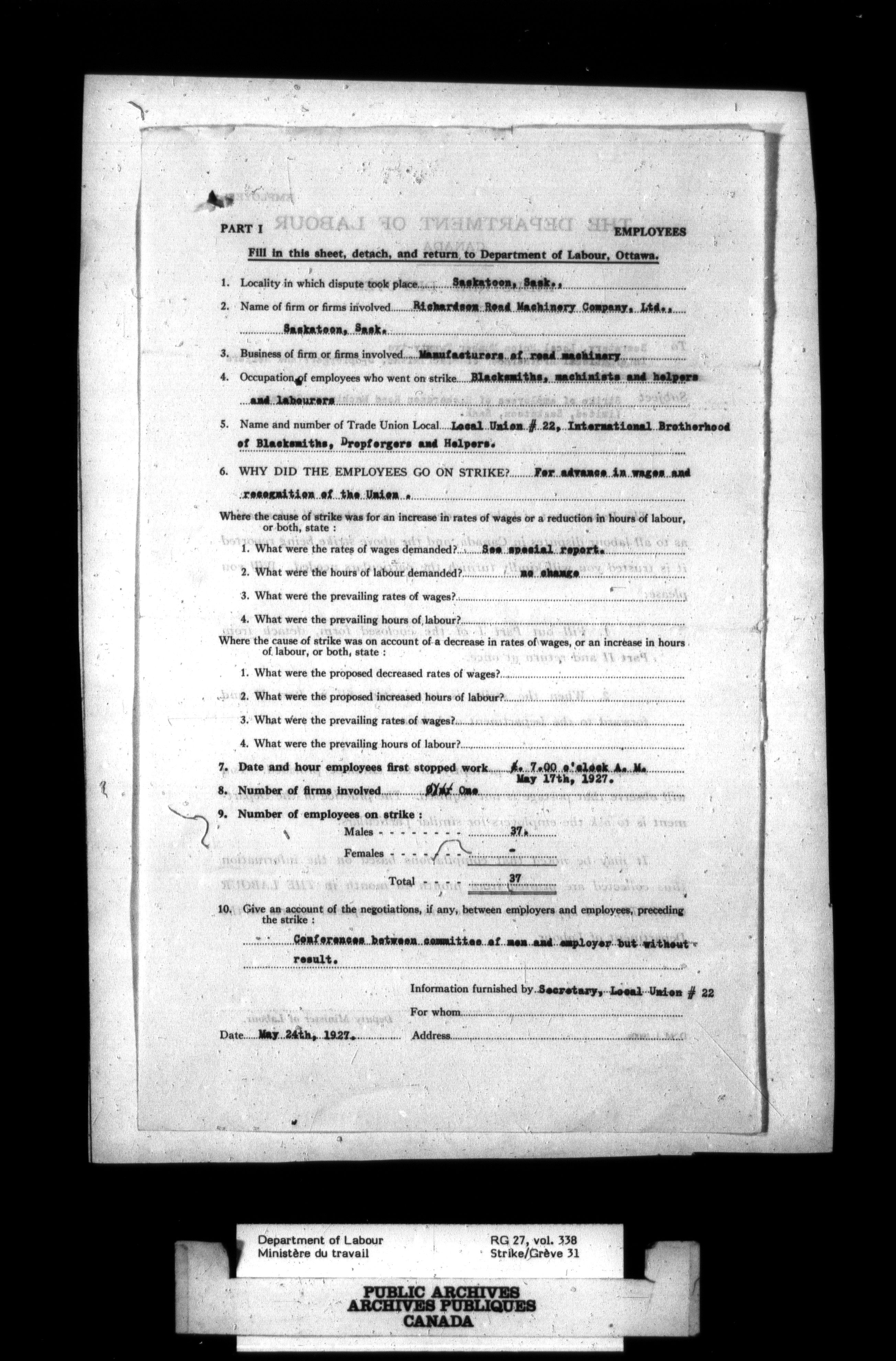 Department of Labour, Economics and Research Branch : Strikes and lockout files - 2750