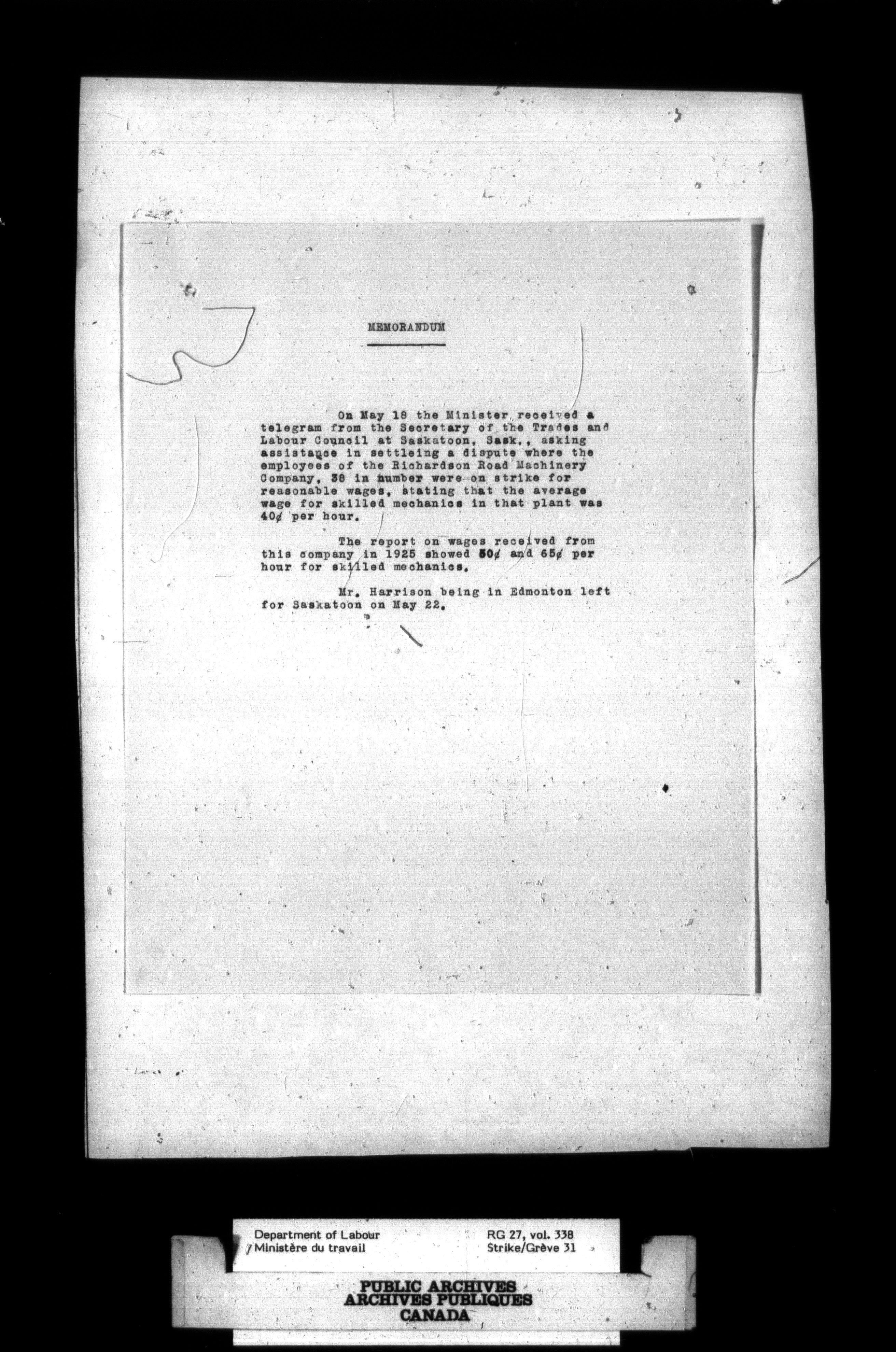 Department of Labour, Economics and Research Branch : Strikes and lockout files - 2750