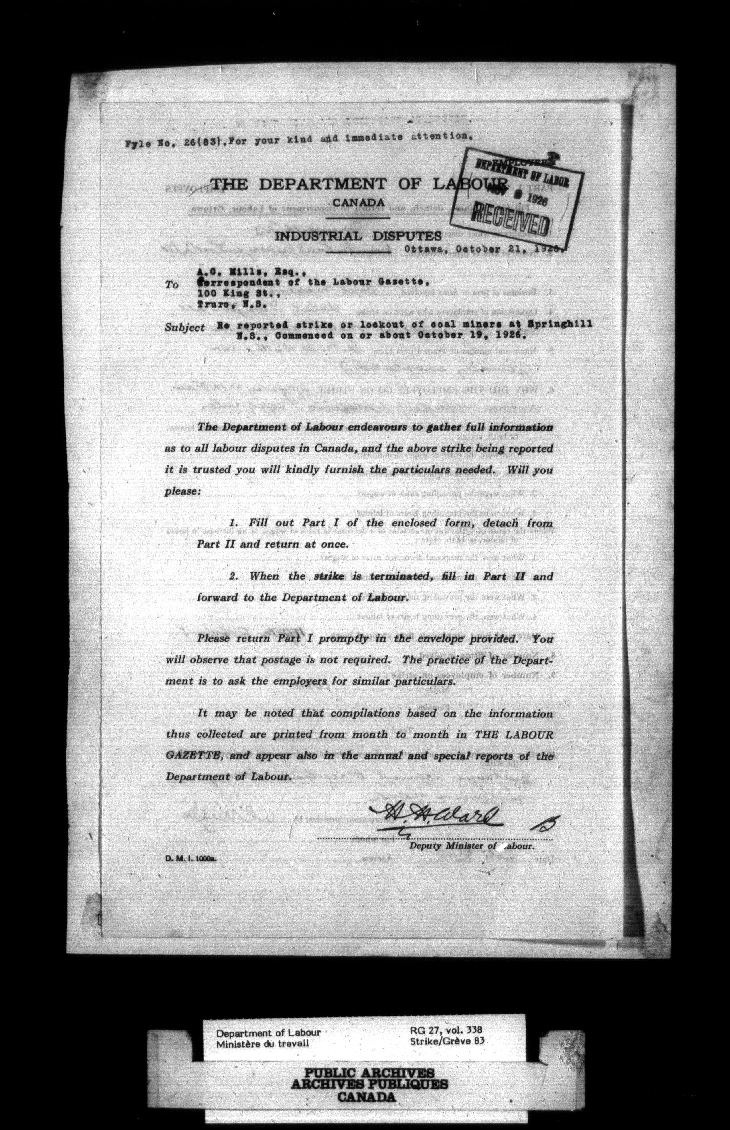 Department of Labour, Economics and Research Branch : Strikes and lockout files - 2750