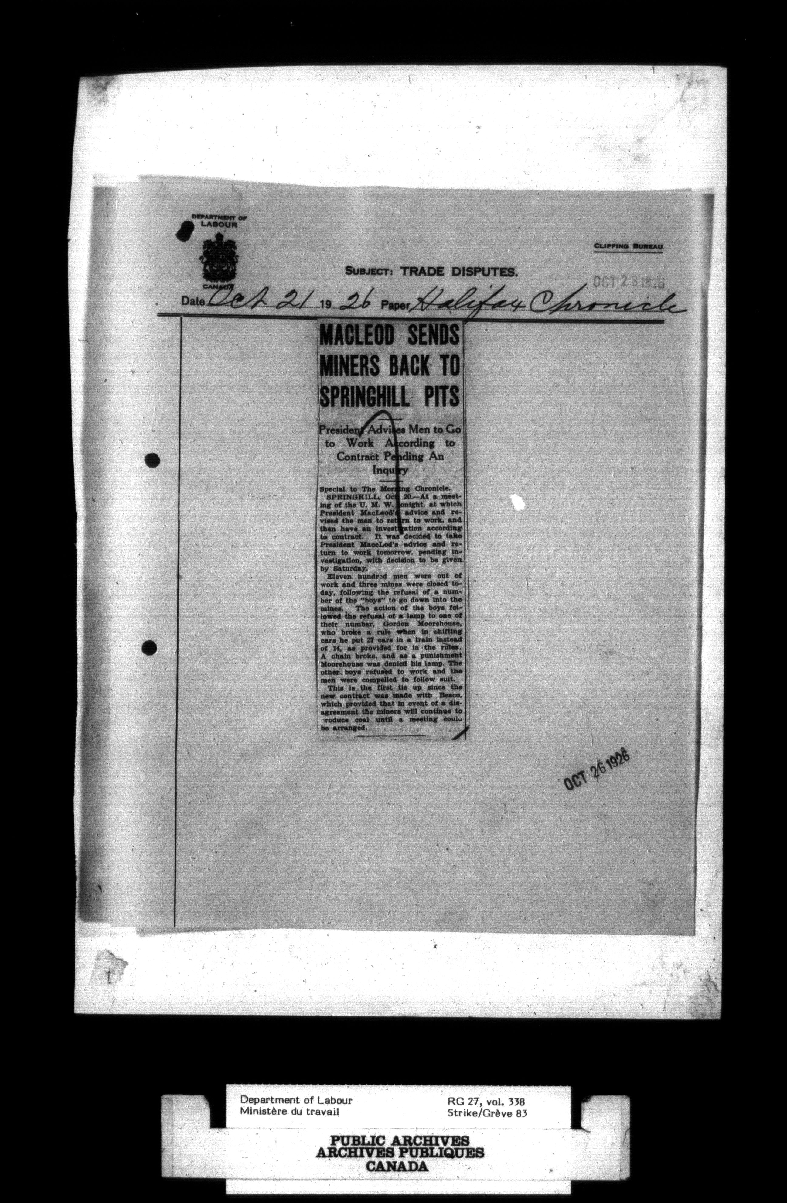 Department of Labour, Economics and Research Branch : Strikes and lockout files - 2750