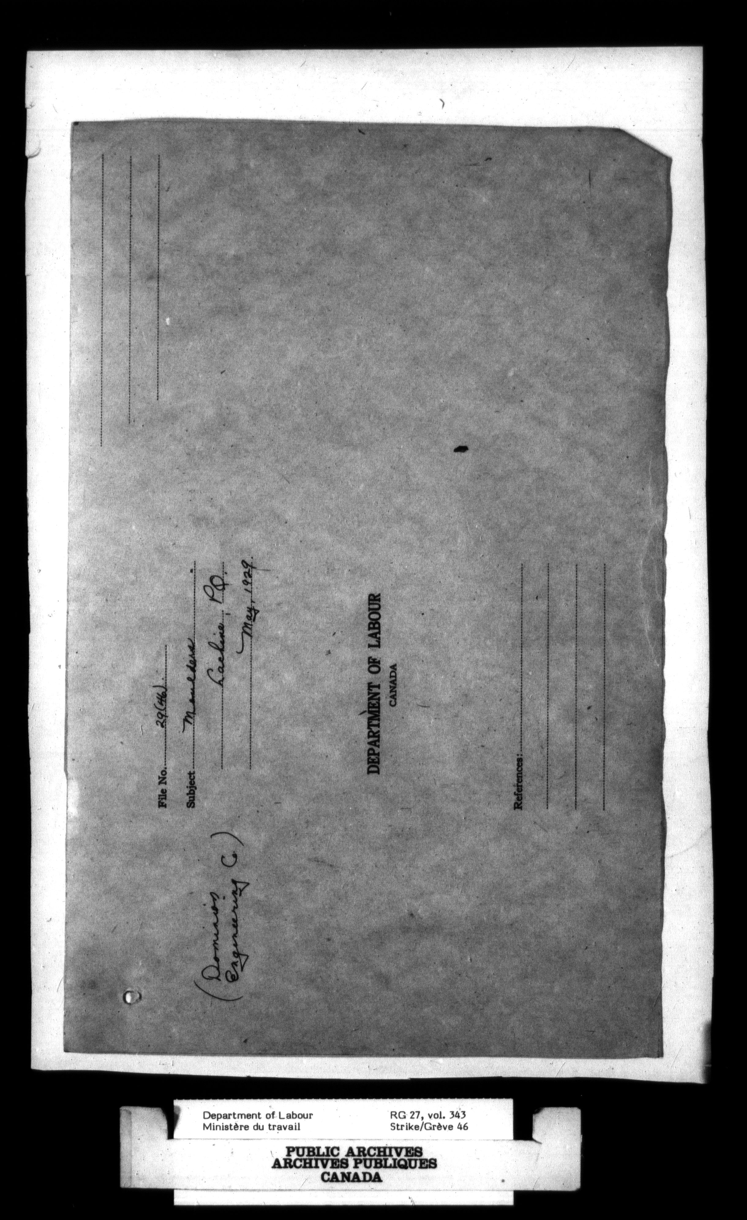 Department of Labour, Economics and Research Branch : Strikes and lockout files - 2754