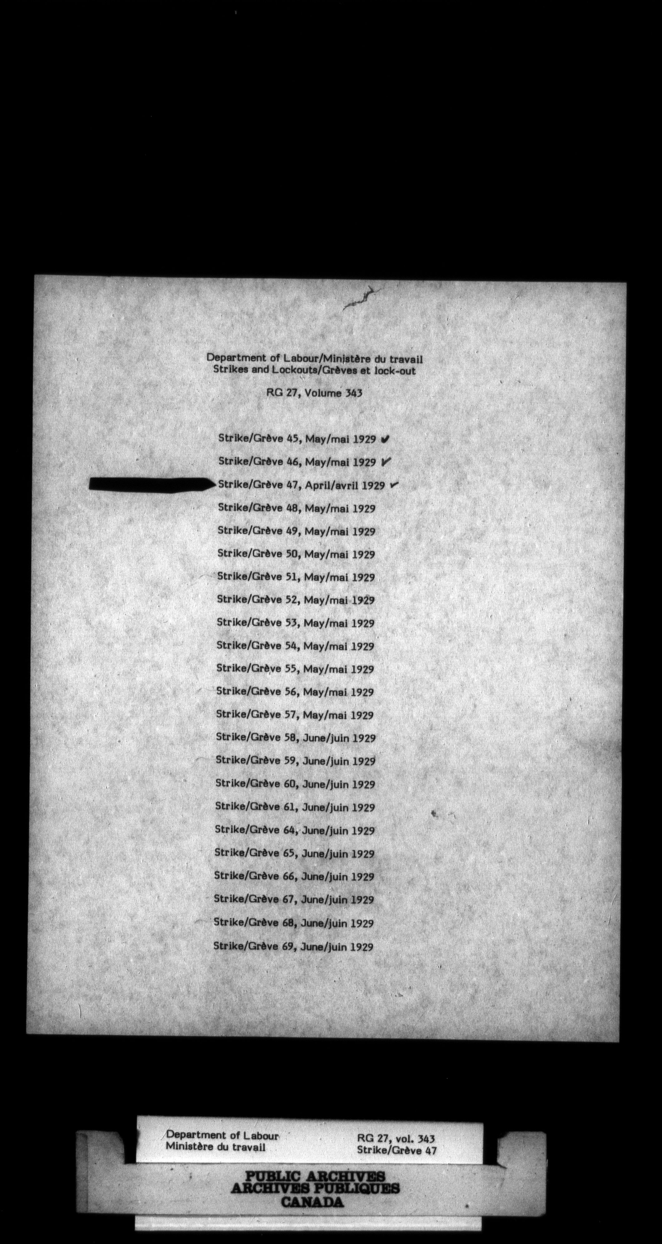Department of Labour, Economics and Research Branch : Strikes and lockout files - 2754