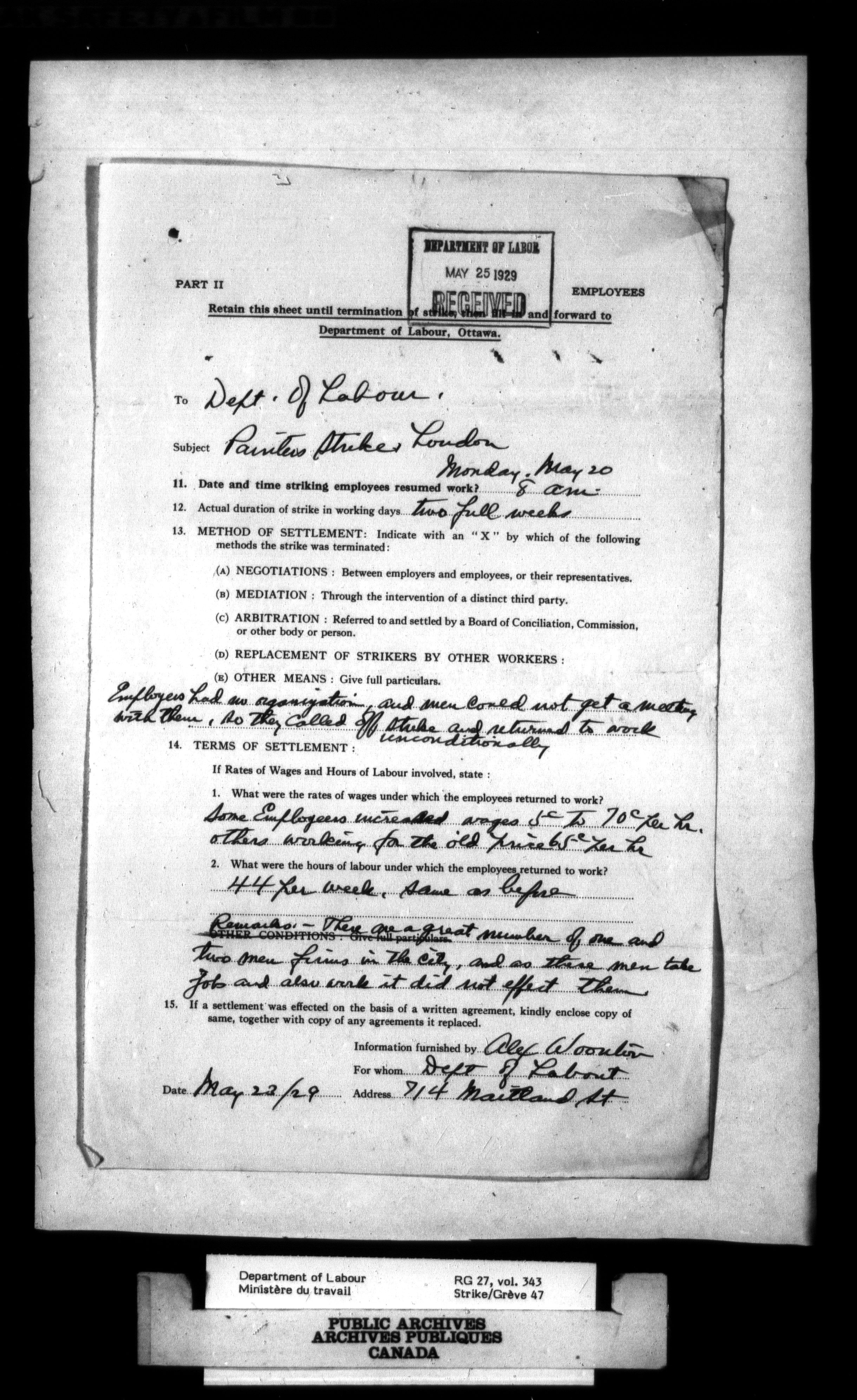 Department of Labour, Economics and Research Branch : Strikes and lockout files - 2754