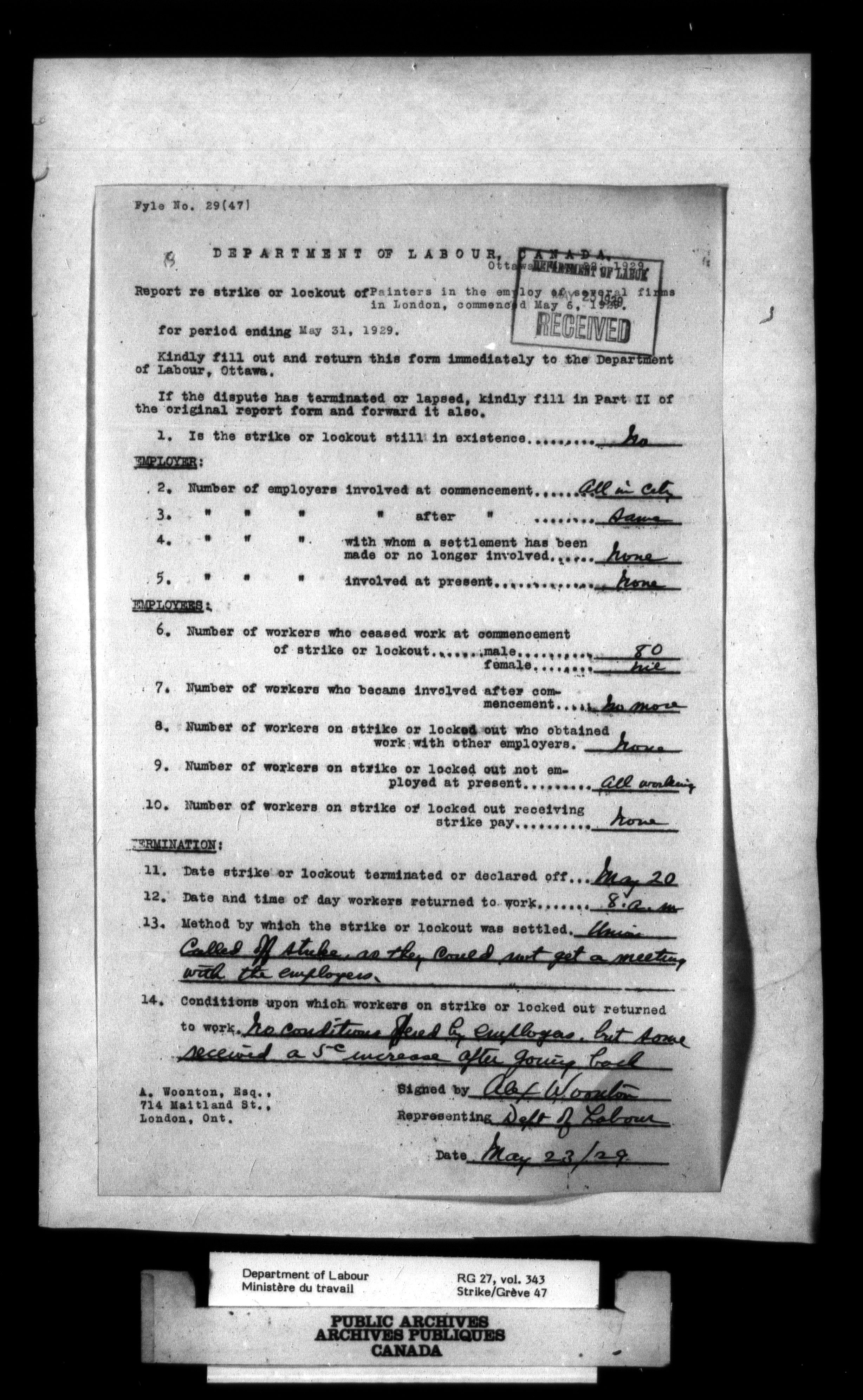 Department of Labour, Economics and Research Branch : Strikes and lockout files - 2754