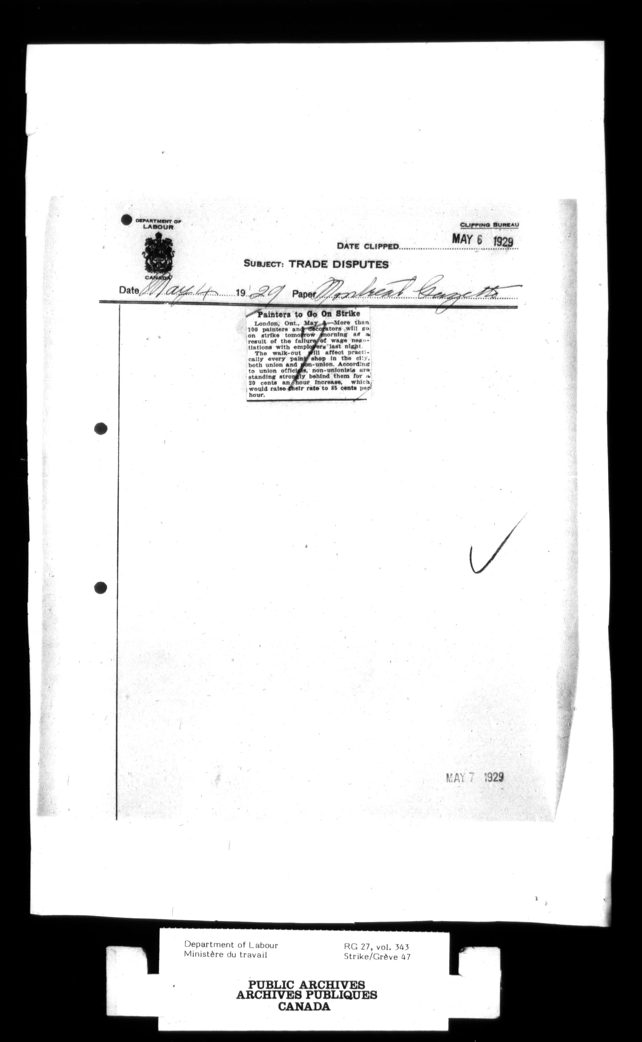 Department of Labour, Economics and Research Branch : Strikes and lockout files - 2754