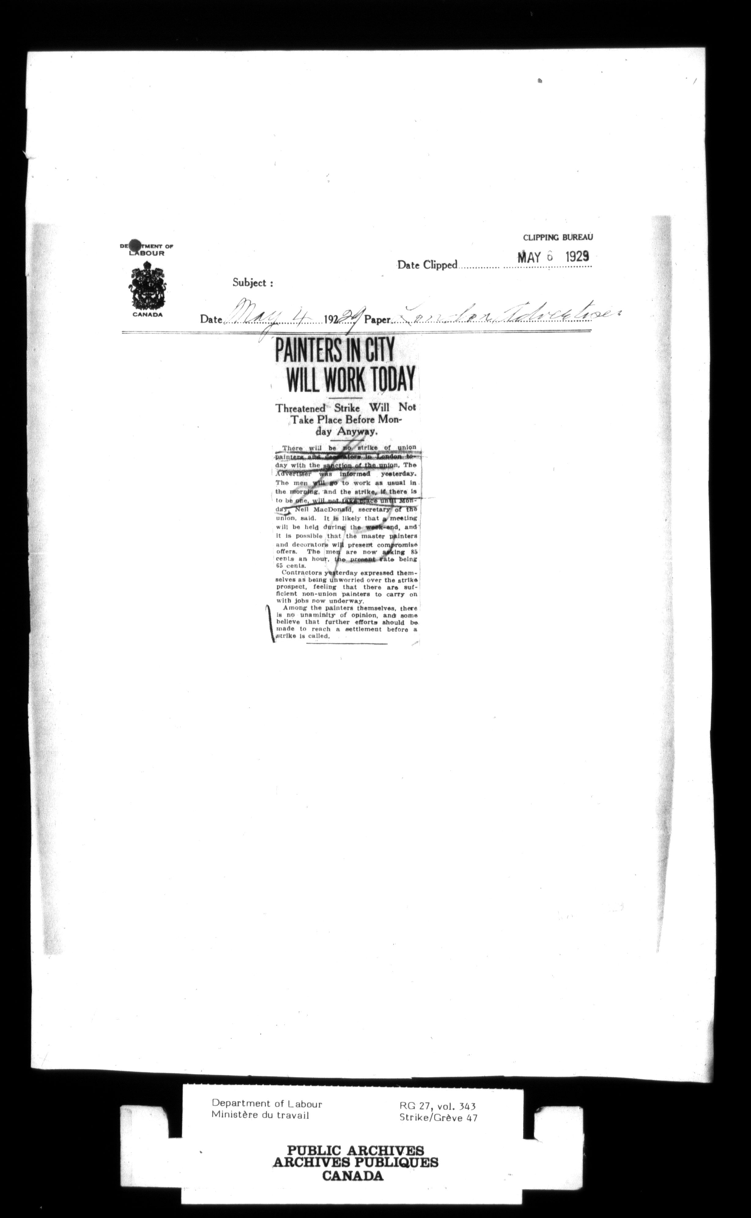 Department of Labour, Economics and Research Branch : Strikes and lockout files - 2754