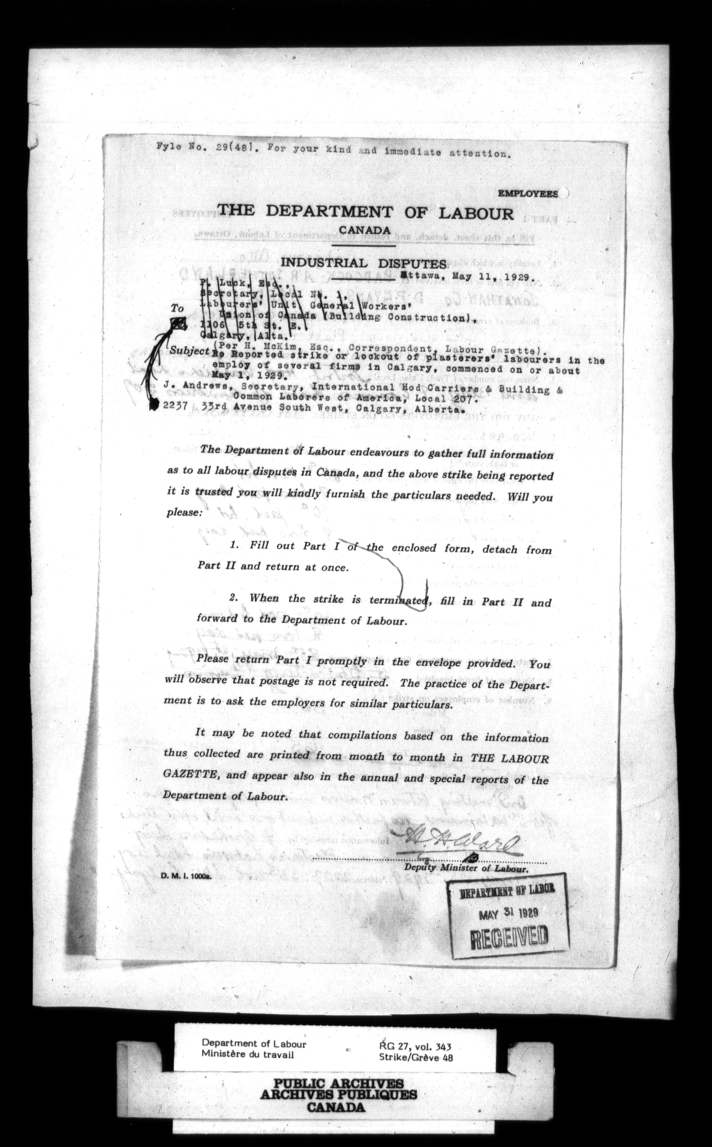Department of Labour, Economics and Research Branch : Strikes and lockout files - 2754