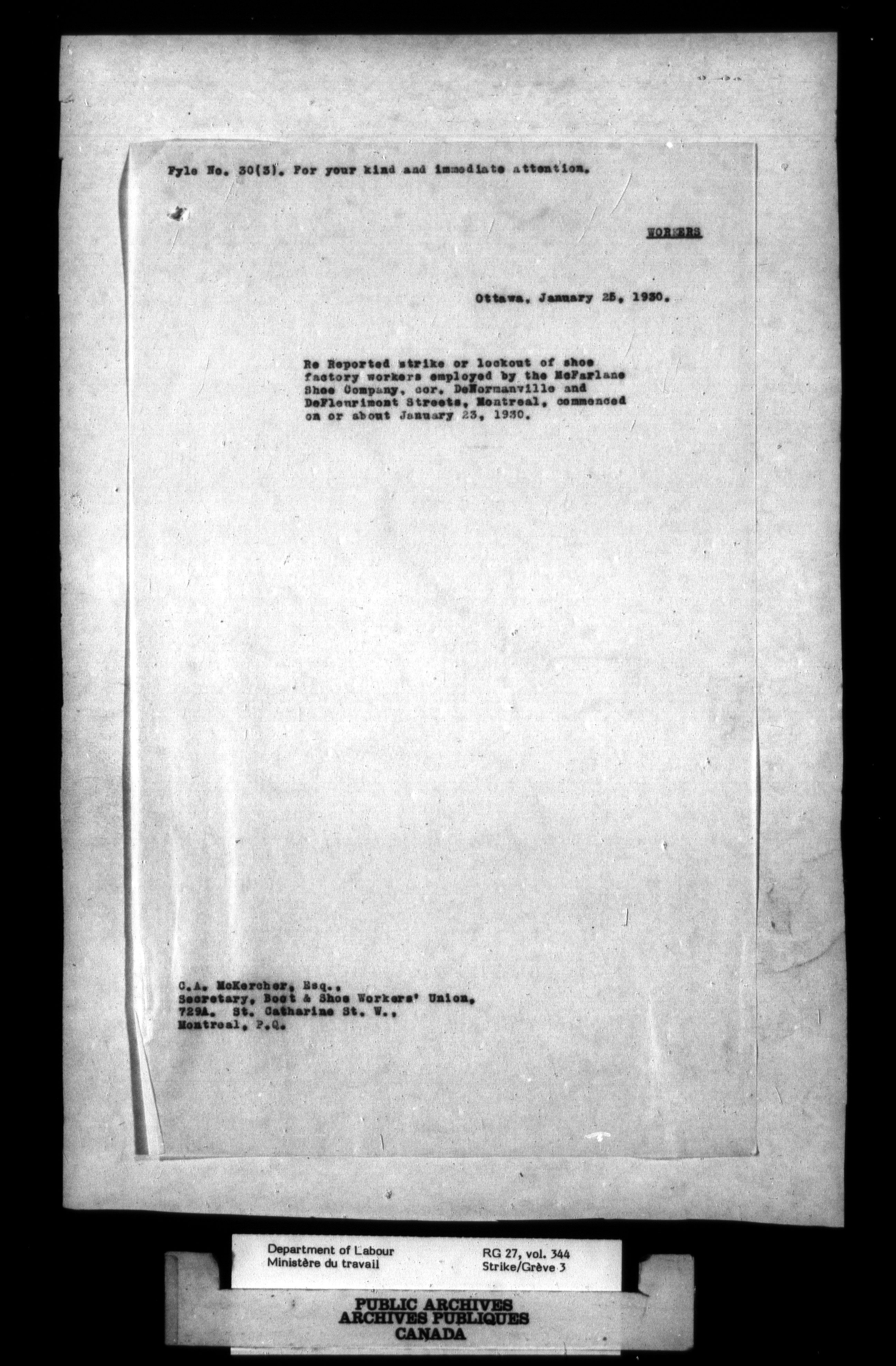Department of Labour, Economics and Research Branch : Strikes and lockout files - 2756