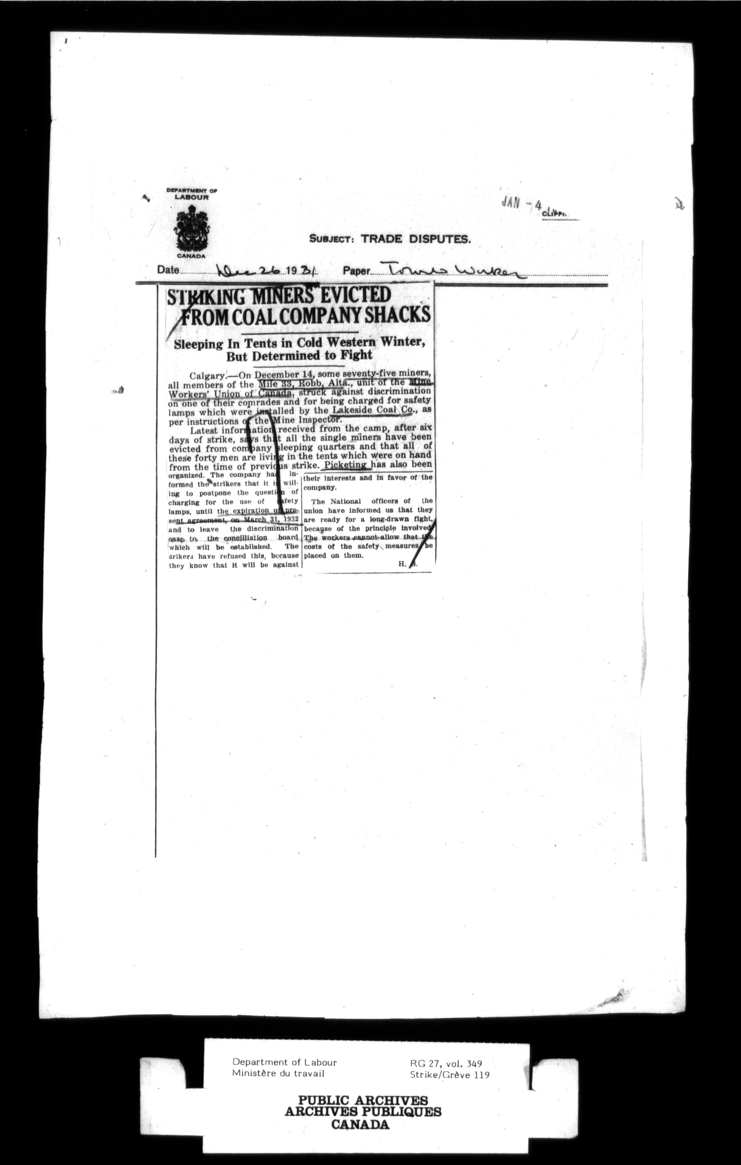 Department of Labour, Economics and Research Branch : Strikes and lockout files - 2760