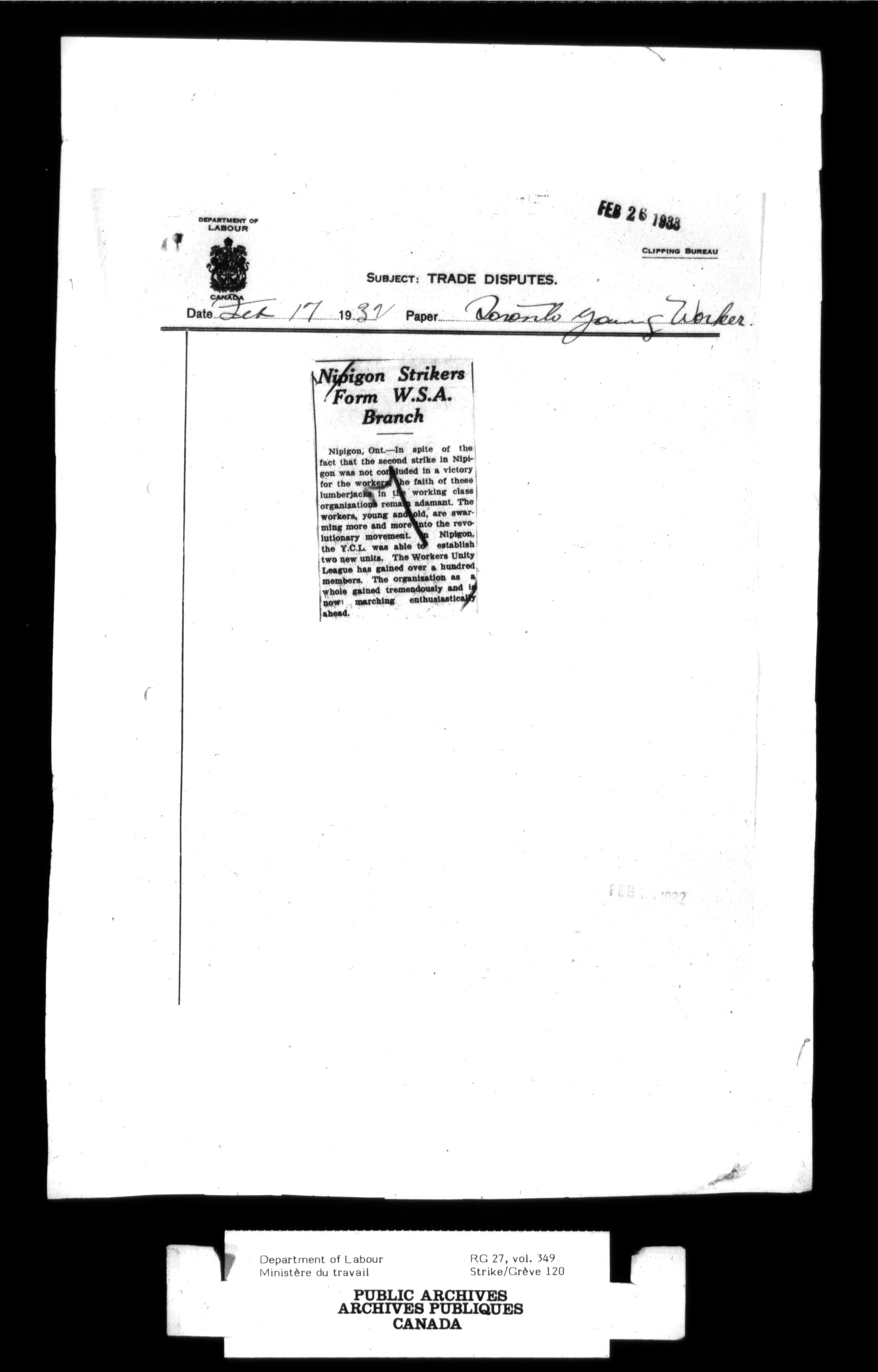Department of Labour, Economics and Research Branch : Strikes and lockout files - 2760