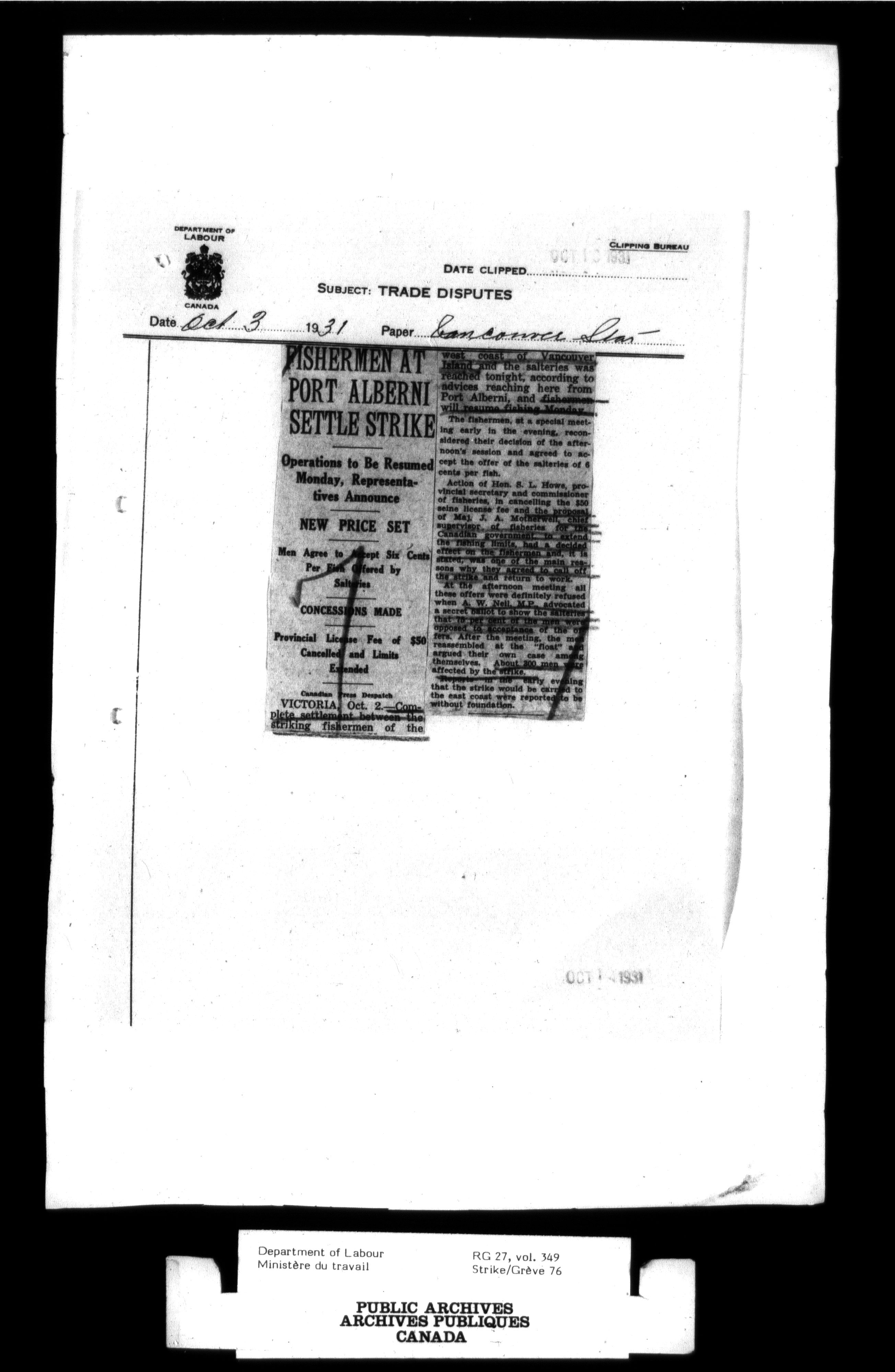 Department of Labour, Economics and Research Branch : Strikes and lockout files - 2760
