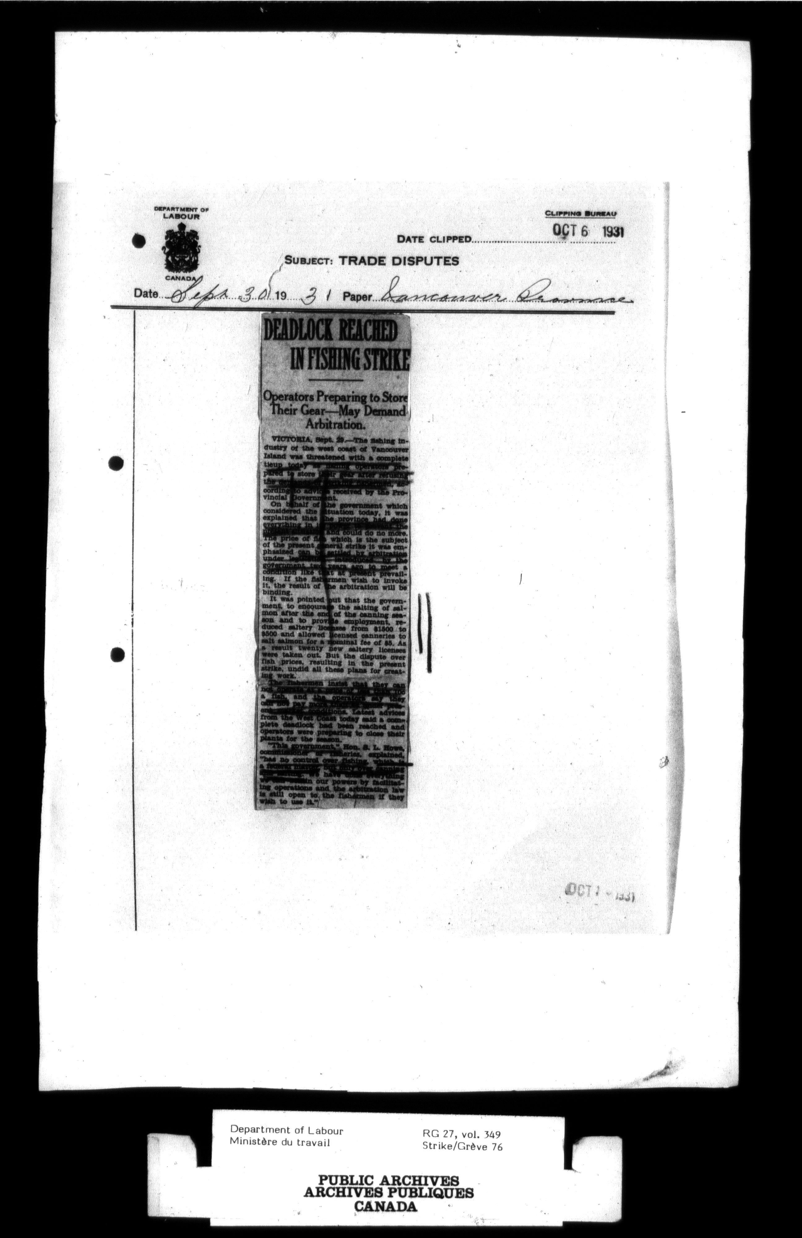 Department of Labour, Economics and Research Branch : Strikes and lockout files - 2760