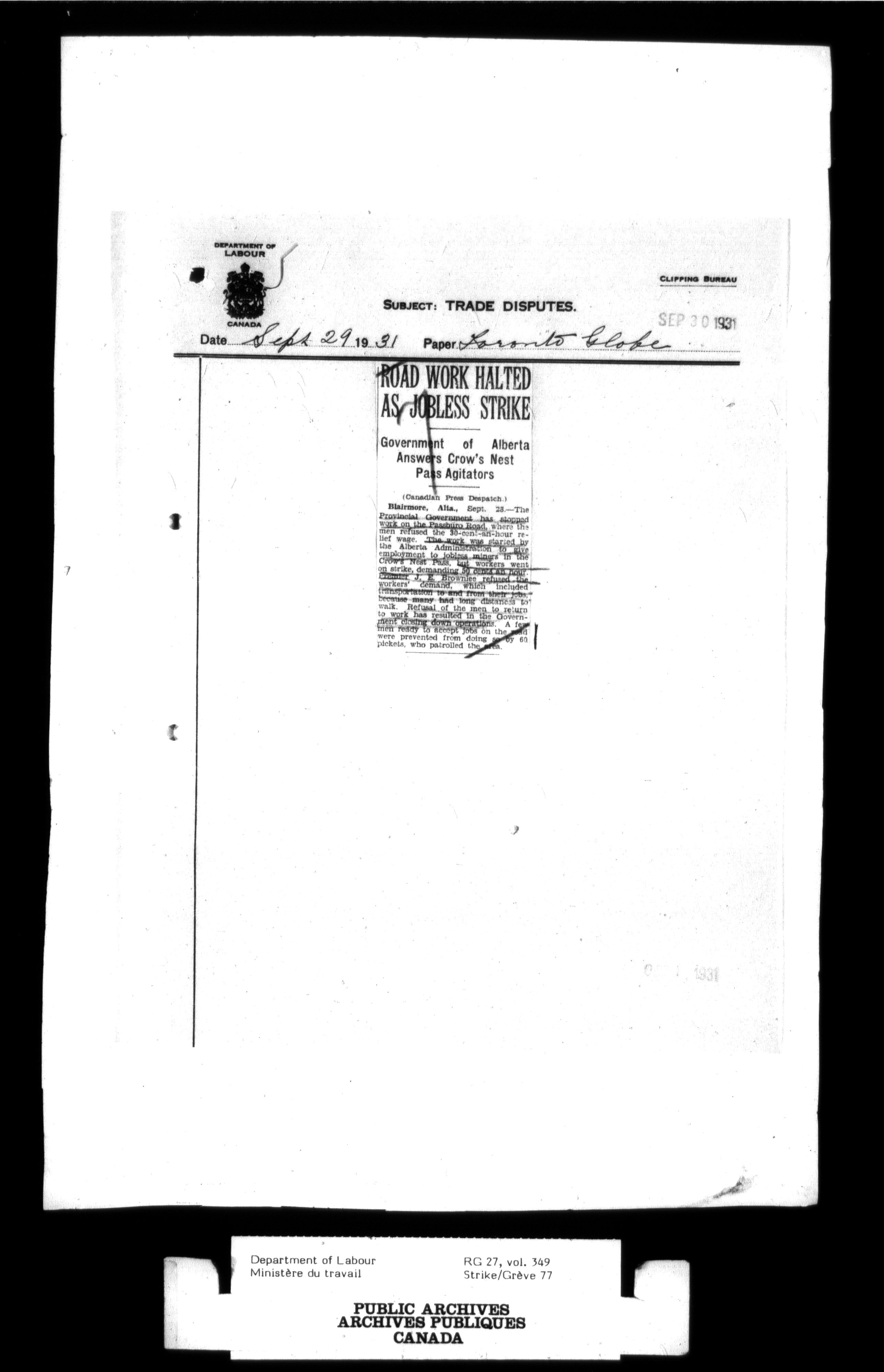 Department of Labour, Economics and Research Branch : Strikes and lockout files - 2760