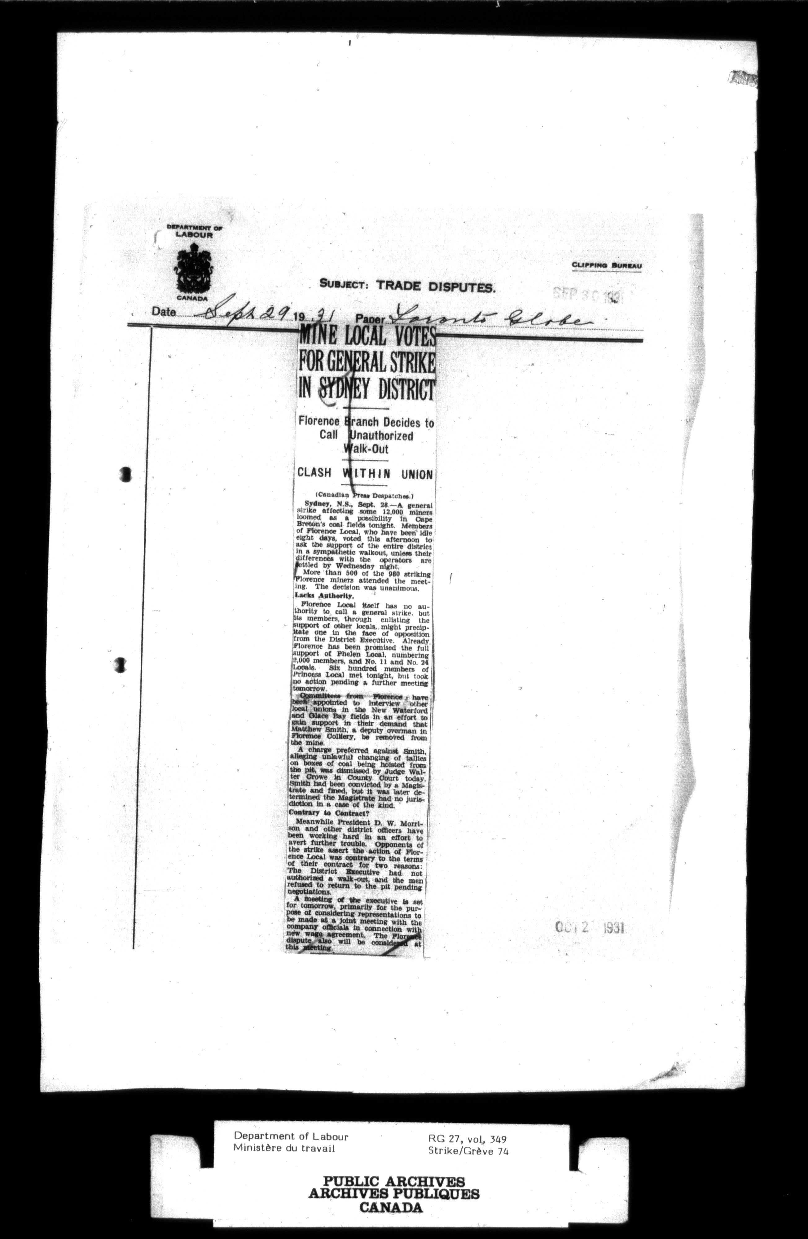 Department of Labour, Economics and Research Branch : Strikes and lockout files - 2760