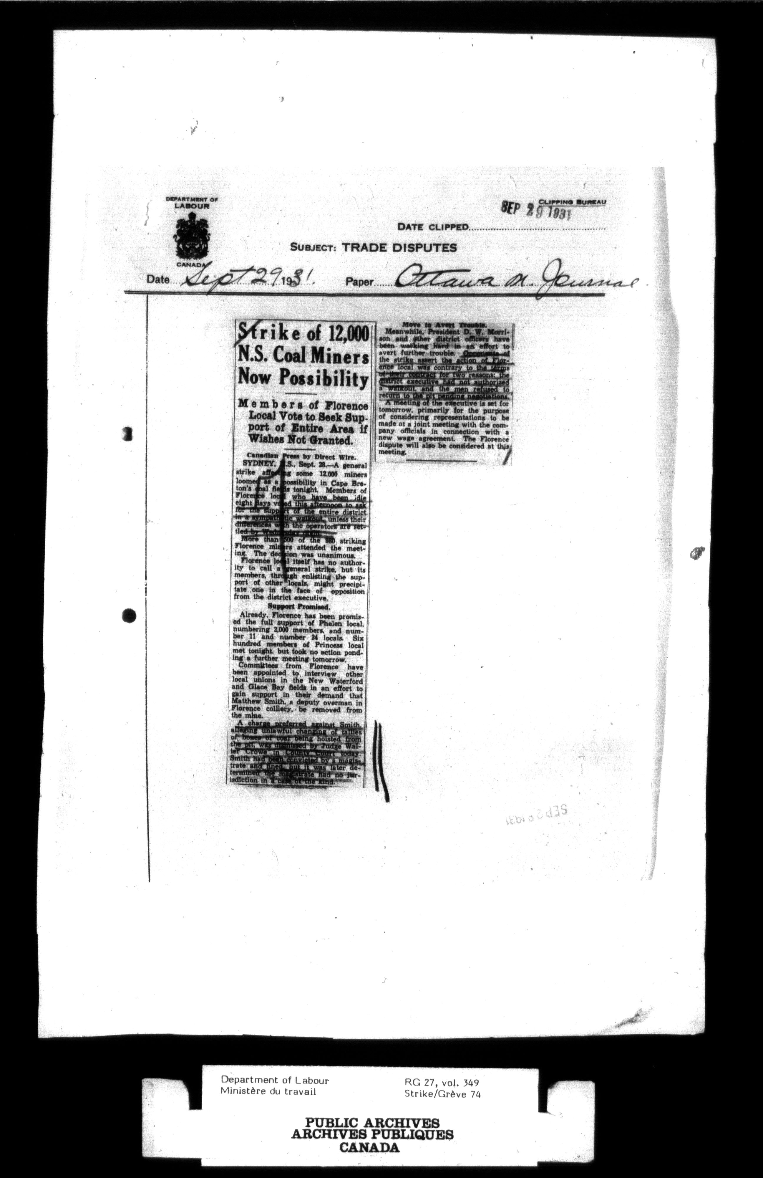 Department of Labour, Economics and Research Branch : Strikes and lockout files - 2760