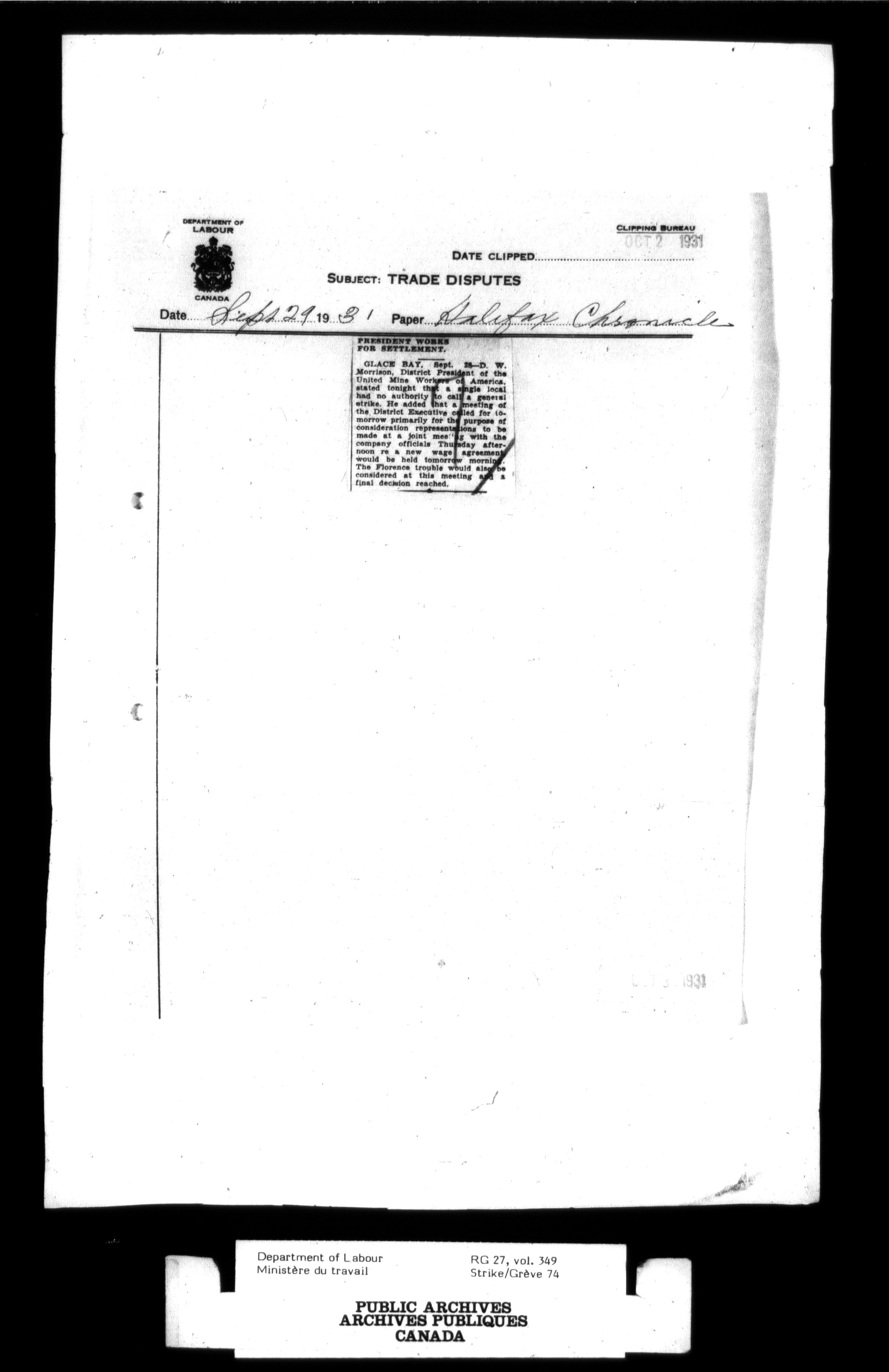 Department of Labour, Economics and Research Branch : Strikes and lockout files - 2760