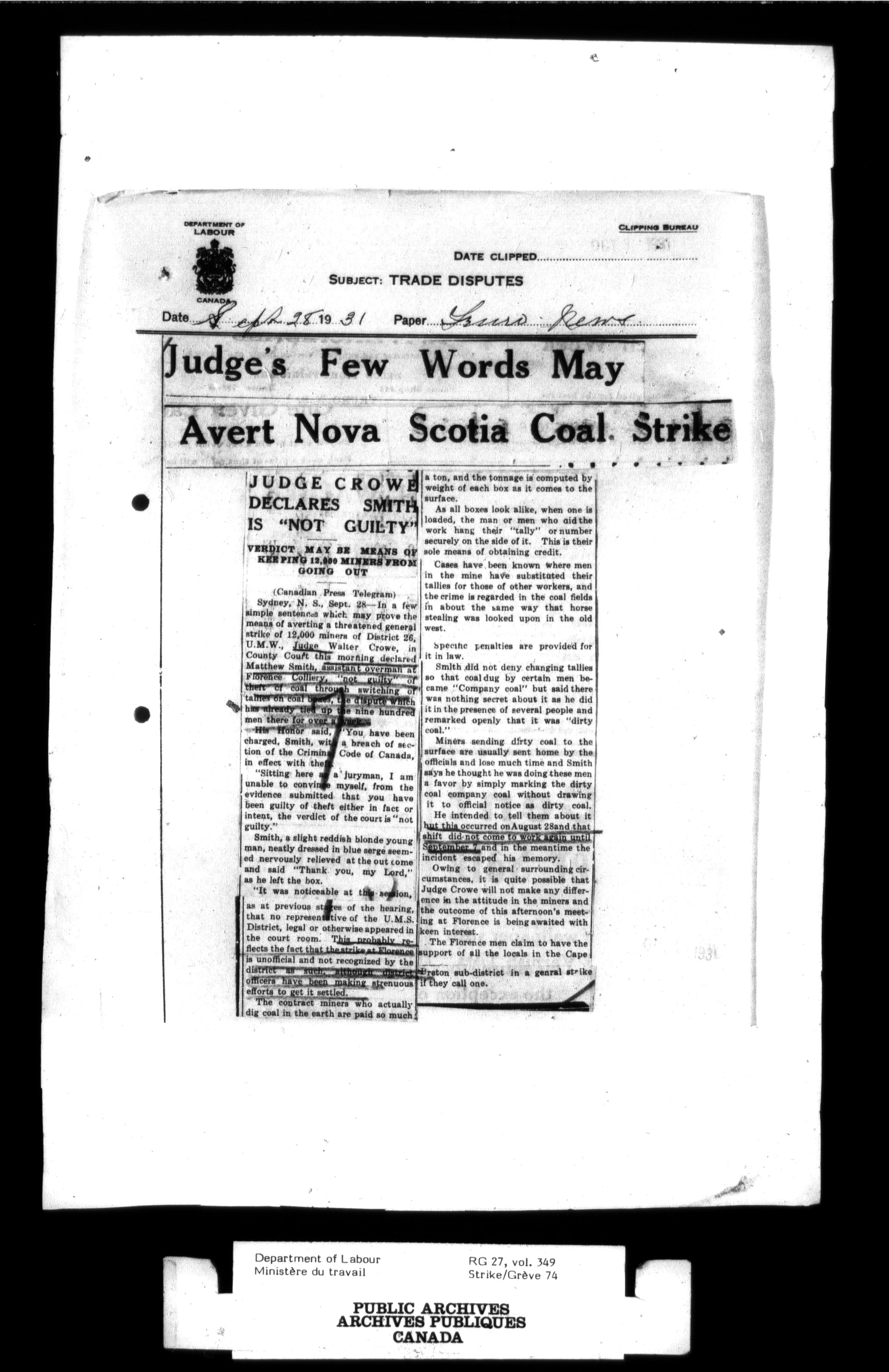 Department of Labour, Economics and Research Branch : Strikes and lockout files - 2760