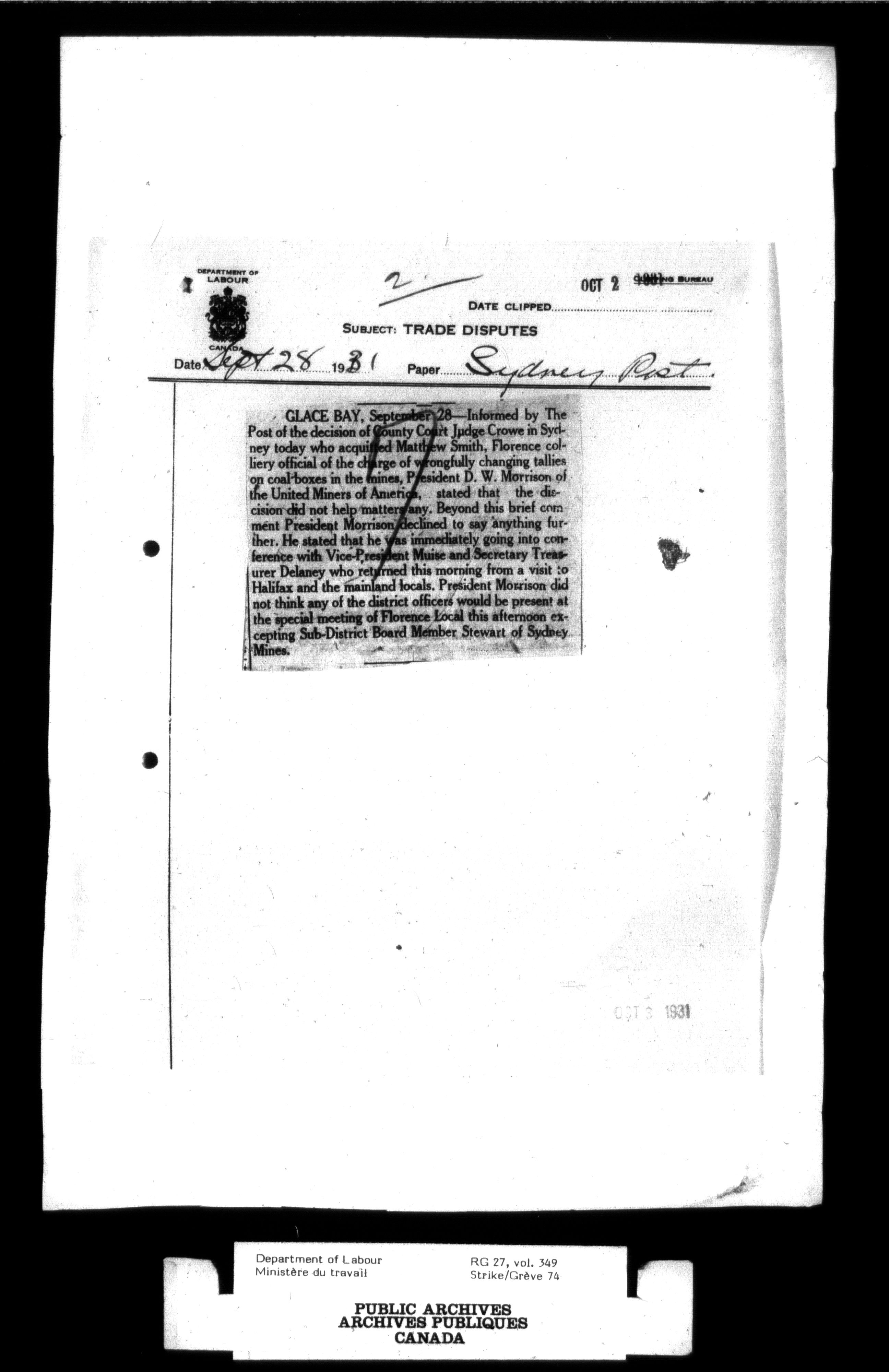 Department of Labour, Economics and Research Branch : Strikes and lockout files - 2760