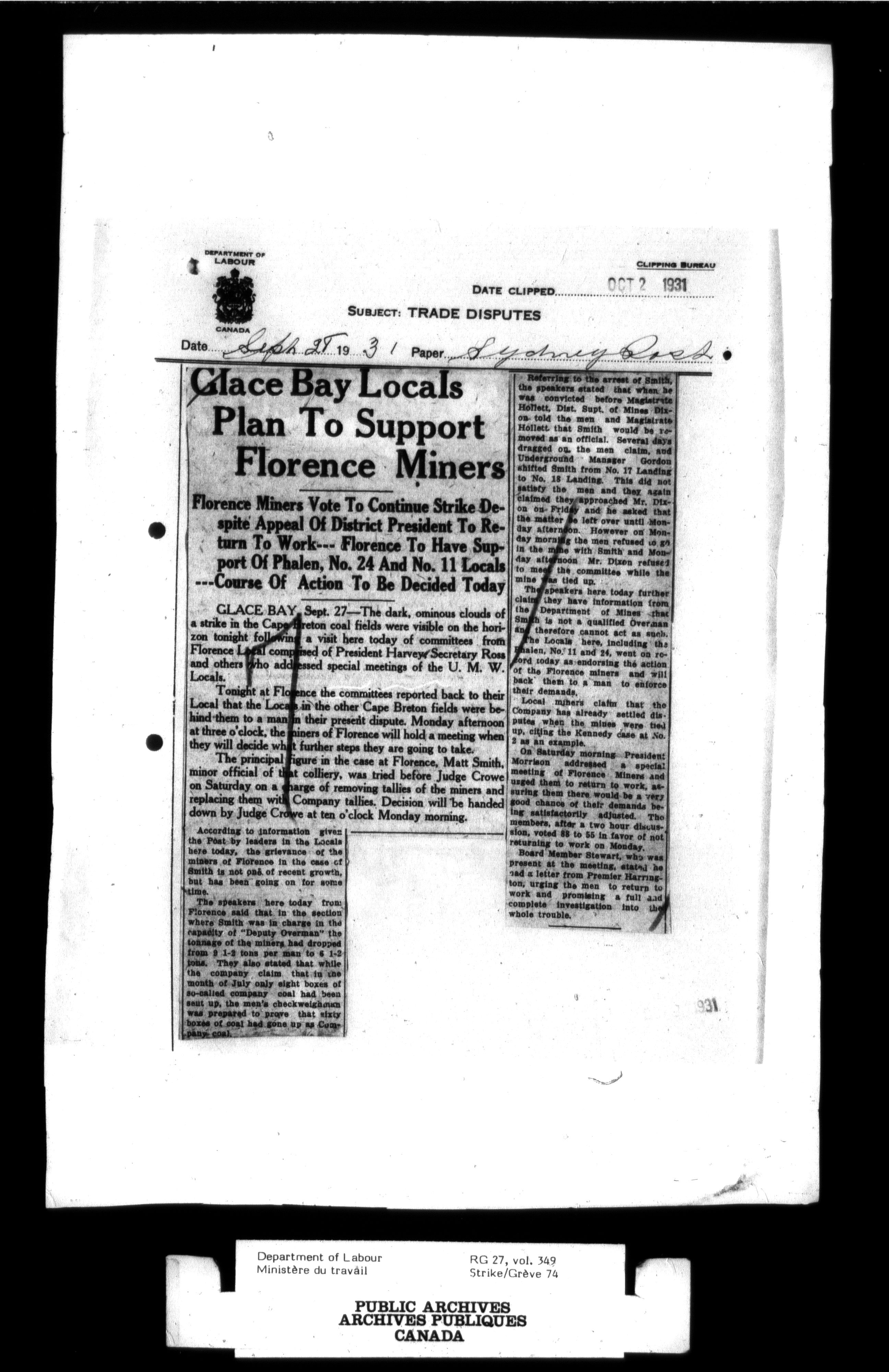 Department of Labour, Economics and Research Branch : Strikes and lockout files - 2760