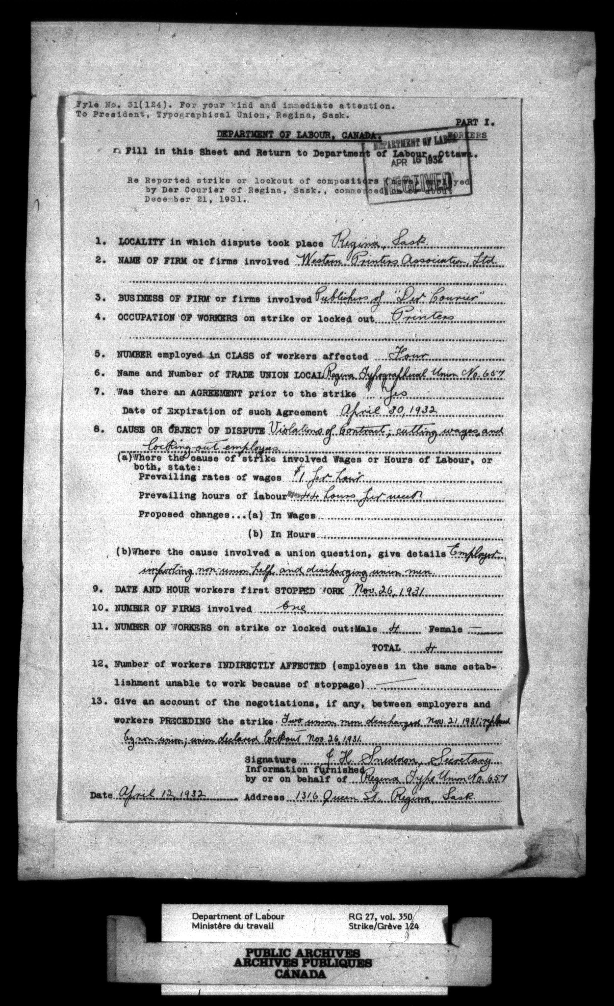 Department of Labour, Economics and Research Branch : Strikes and lockout files - 2761