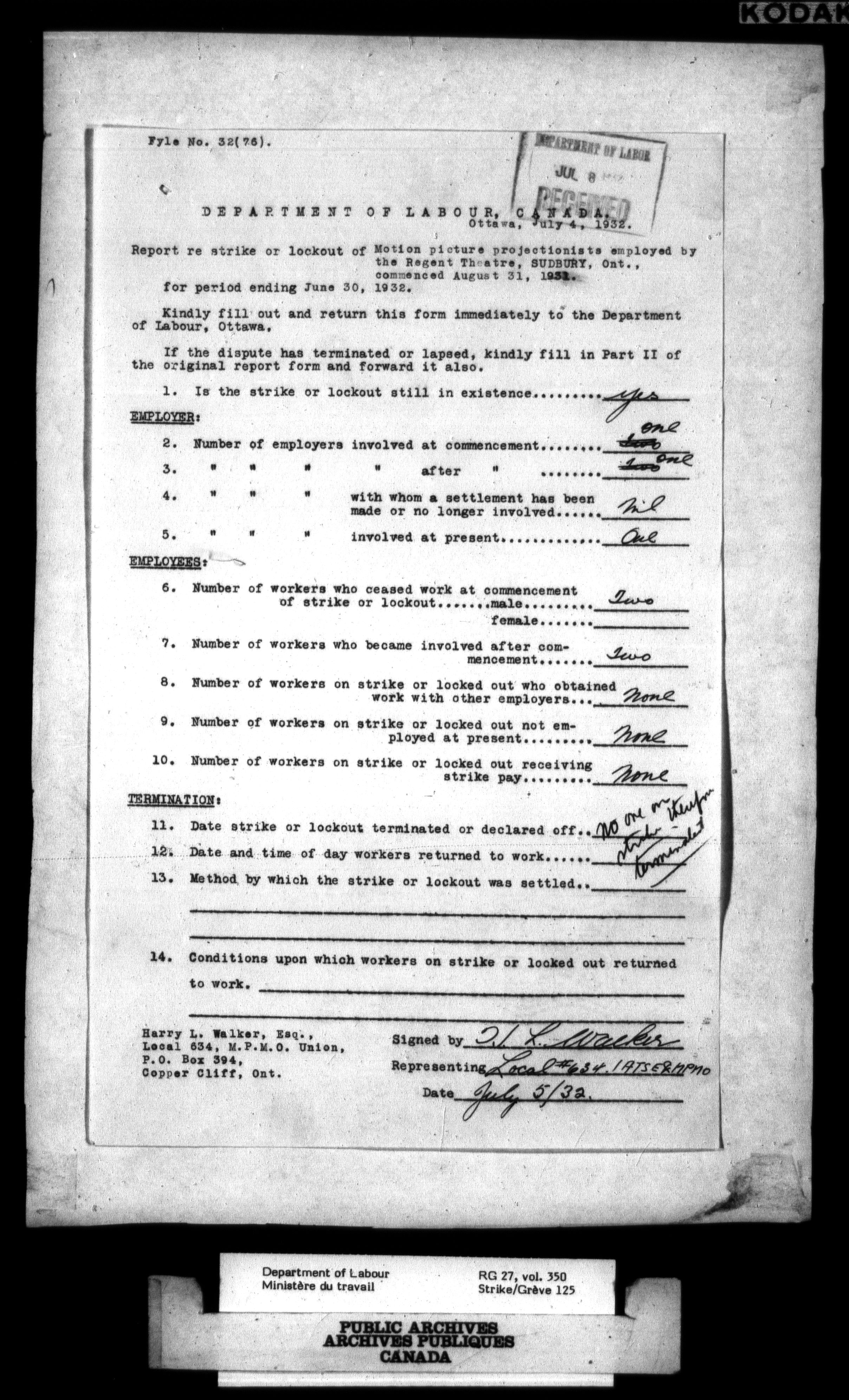 Department of Labour, Economics and Research Branch : Strikes and lockout files - 2761
