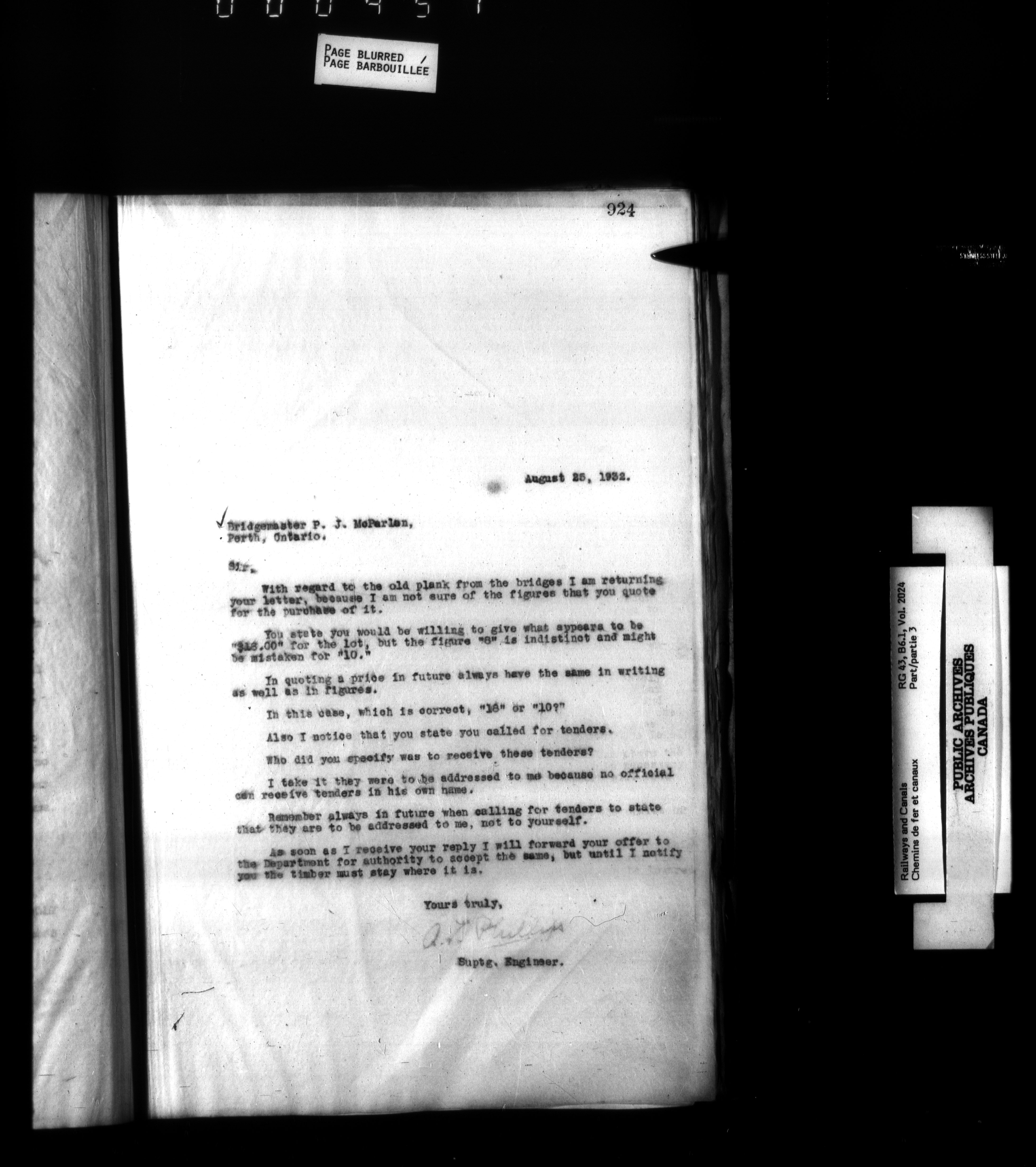 Department of Railways and Canals, Superintending Engineer of the Rideau Canal : Letterbooks - 2767