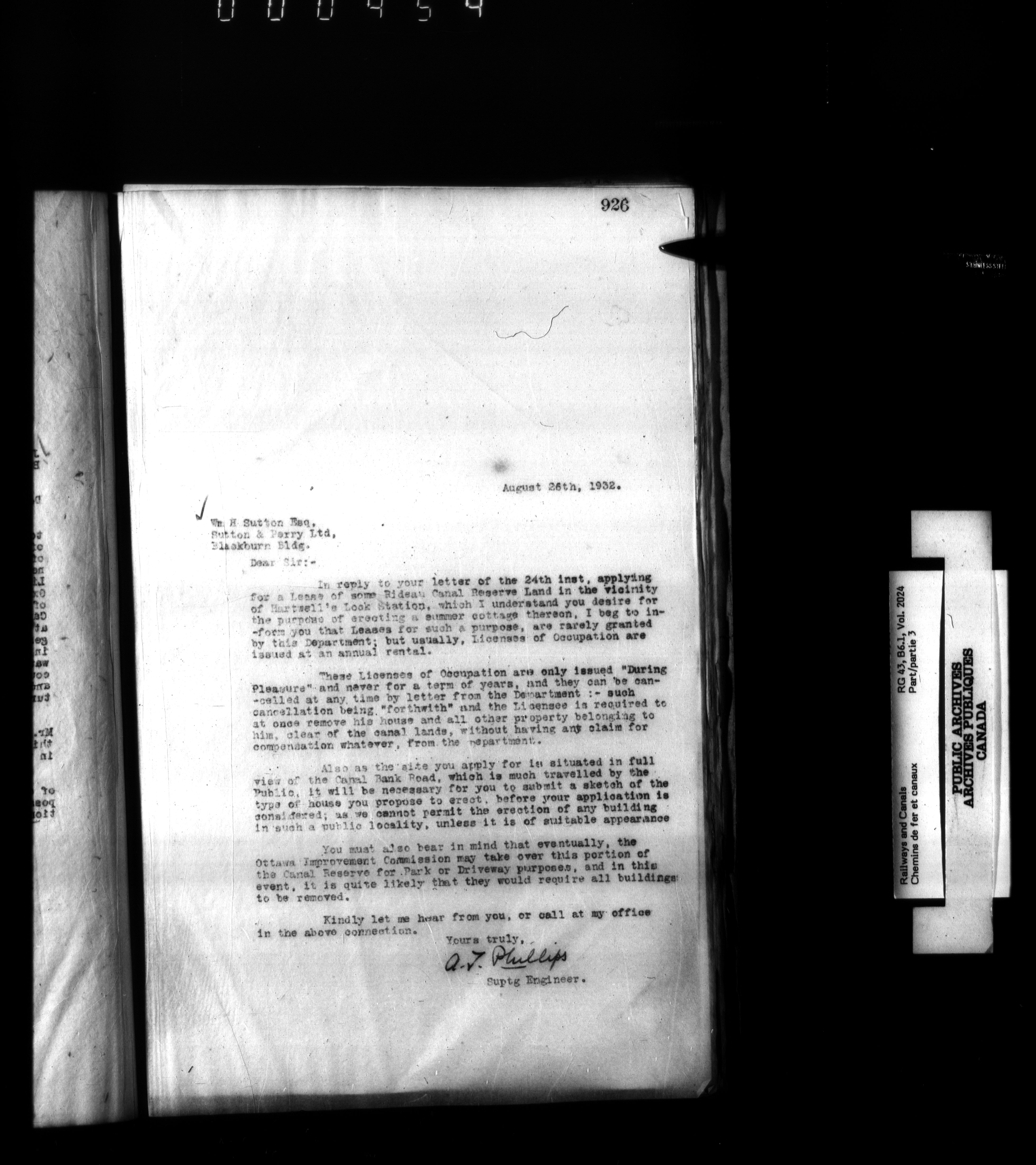 Department of Railways and Canals, Superintending Engineer of the Rideau Canal : Letterbooks : T-2767