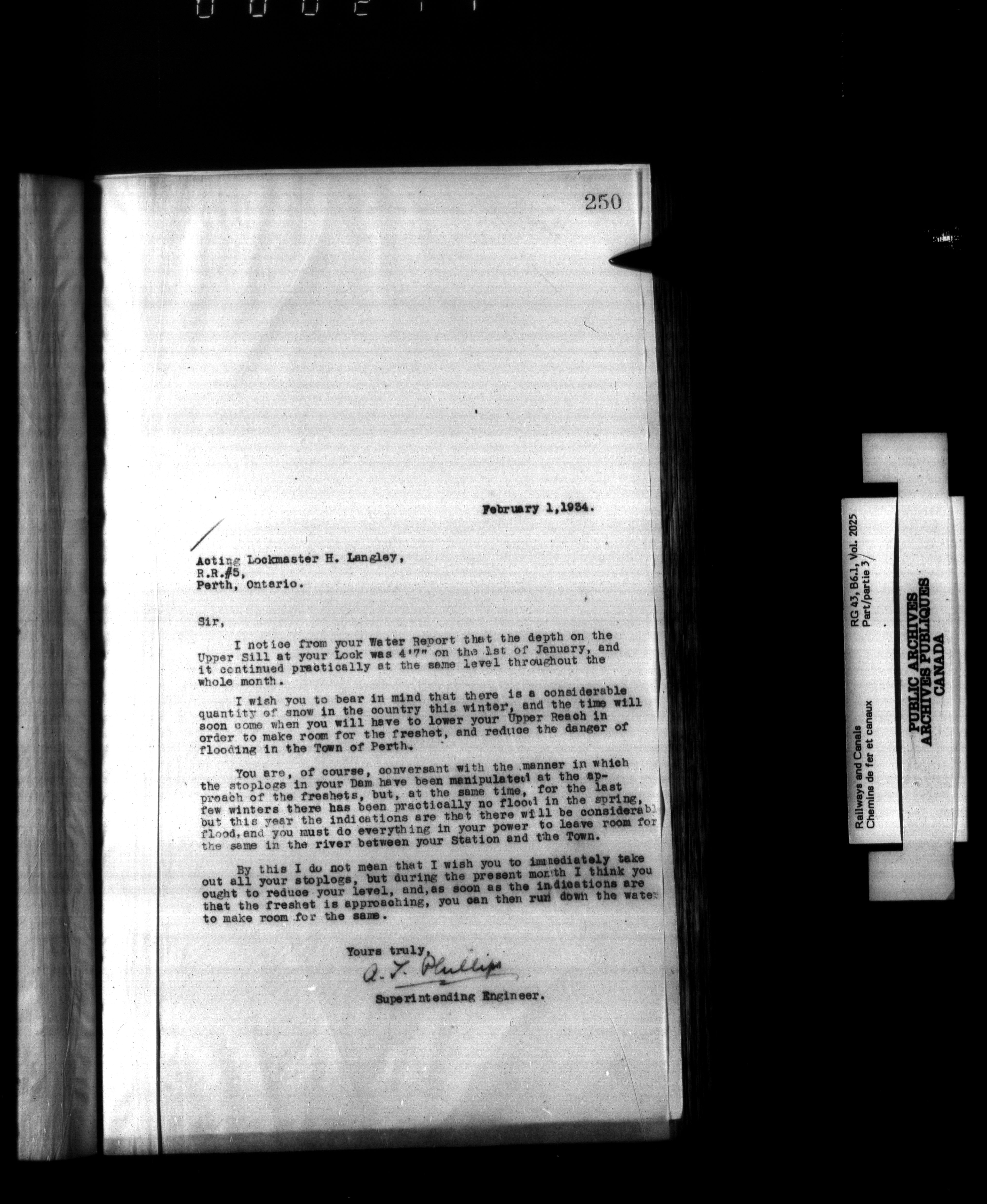 Department of Railways and Canals, Superintending Engineer of the Rideau Canal : Letterbooks : T-2769
