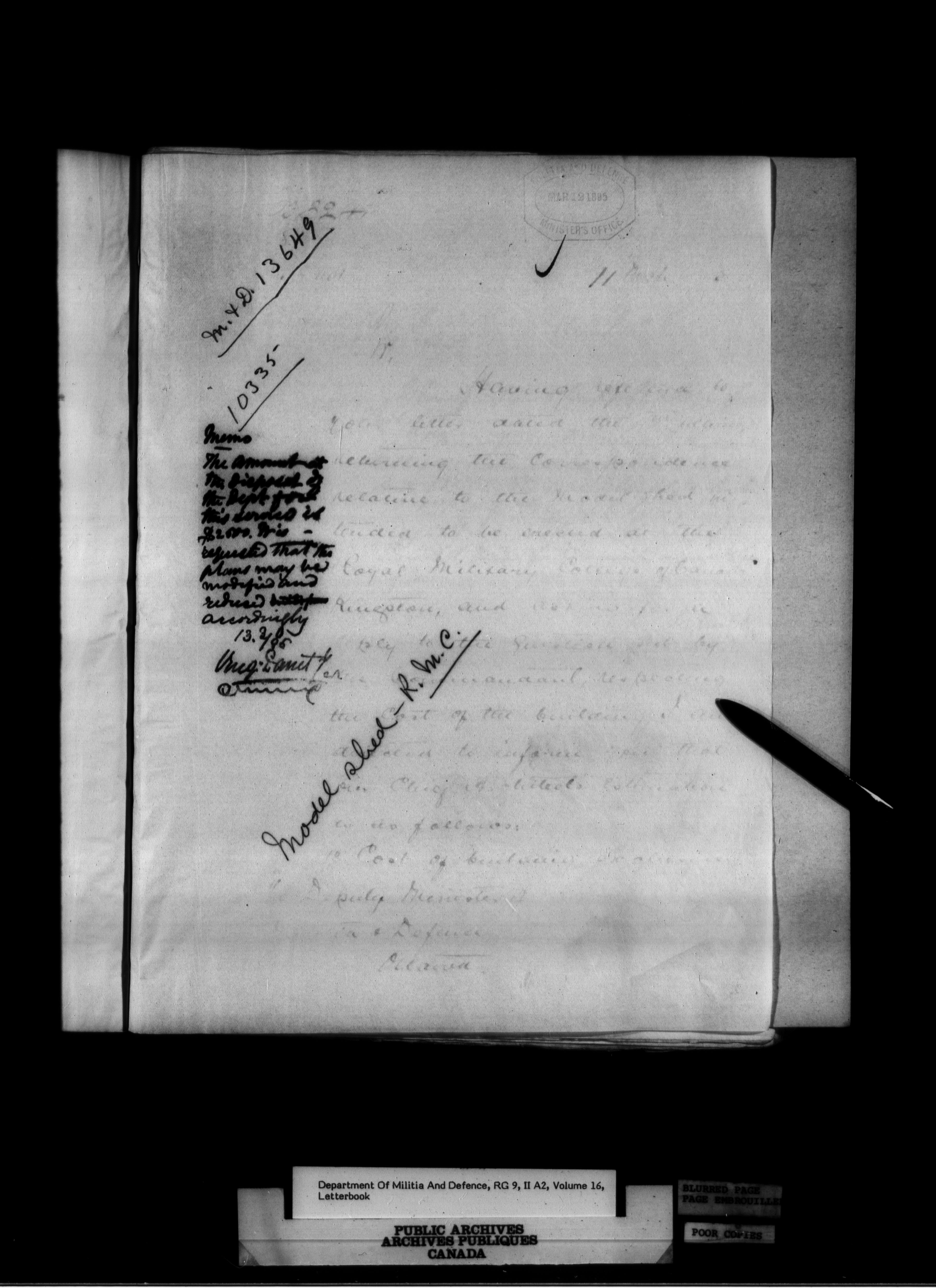 Department of Militia and Defence : reports and memoranda of the Deputy Minister's office, 1867-1907 : T-277