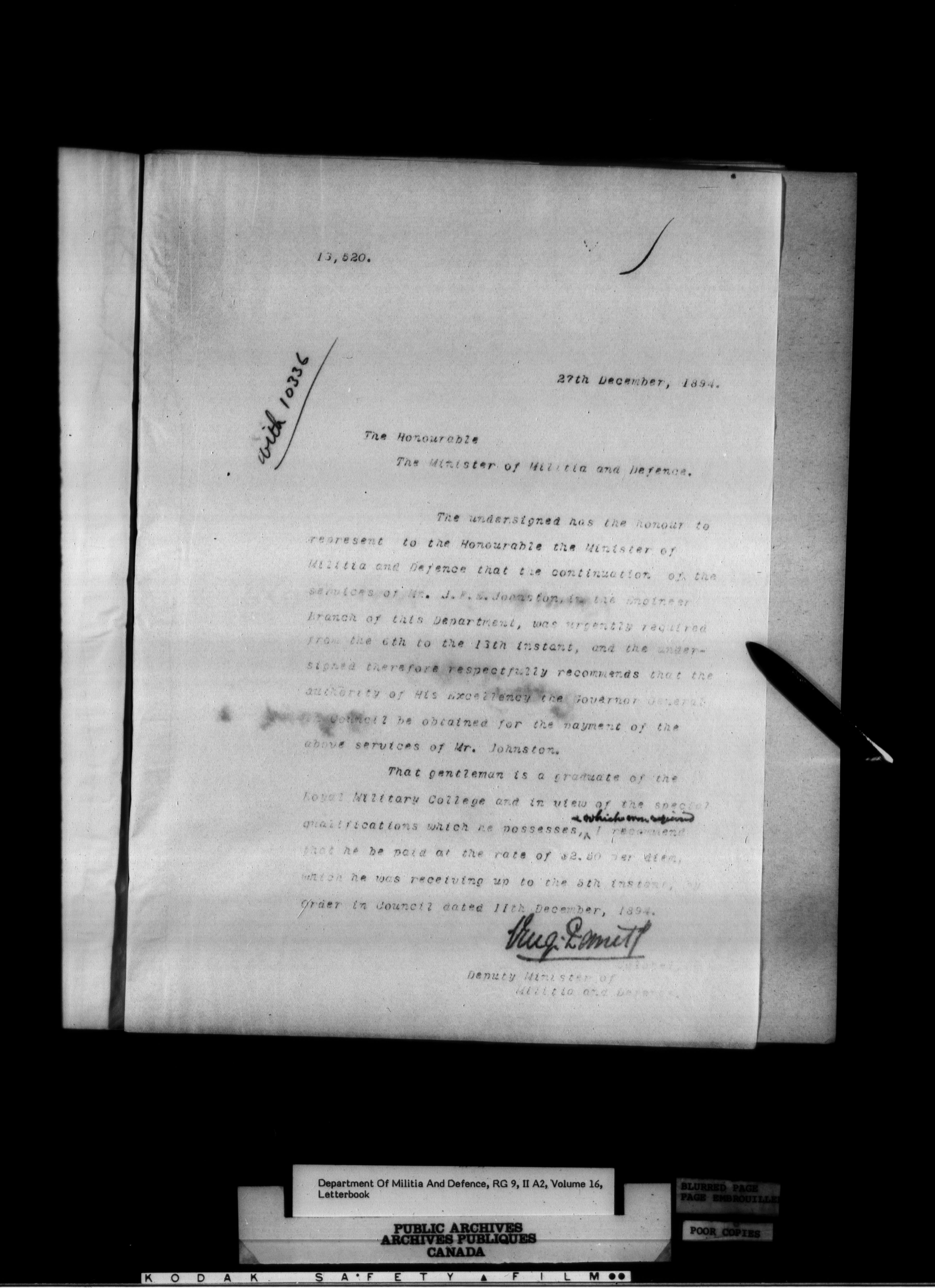 Department of Militia and Defence : reports and memoranda of the Deputy Minister's office, 1867-1907 : T-277