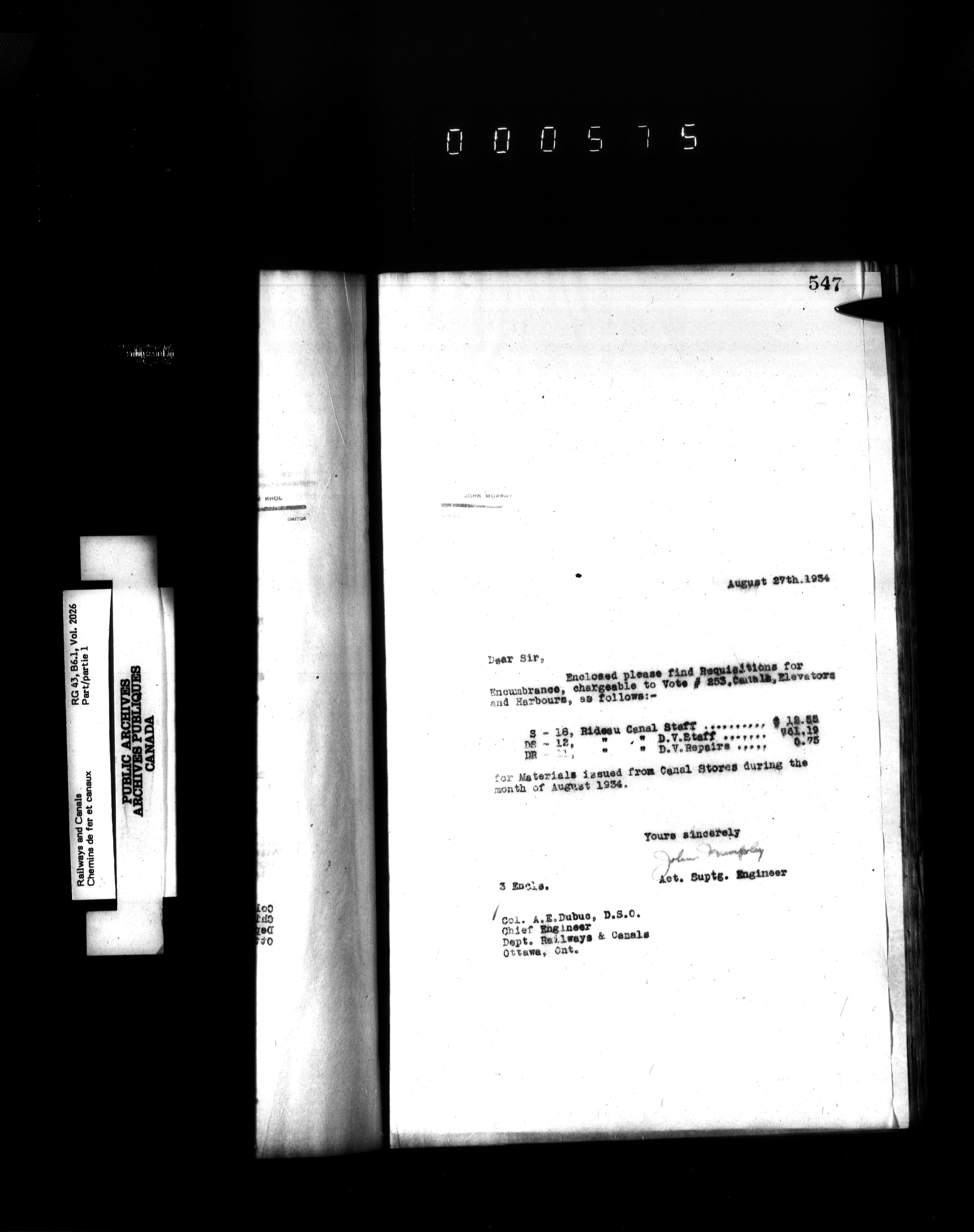 Department of Railways and Canals, Superintending Engineer of the Rideau Canal : Letterbooks - 2770