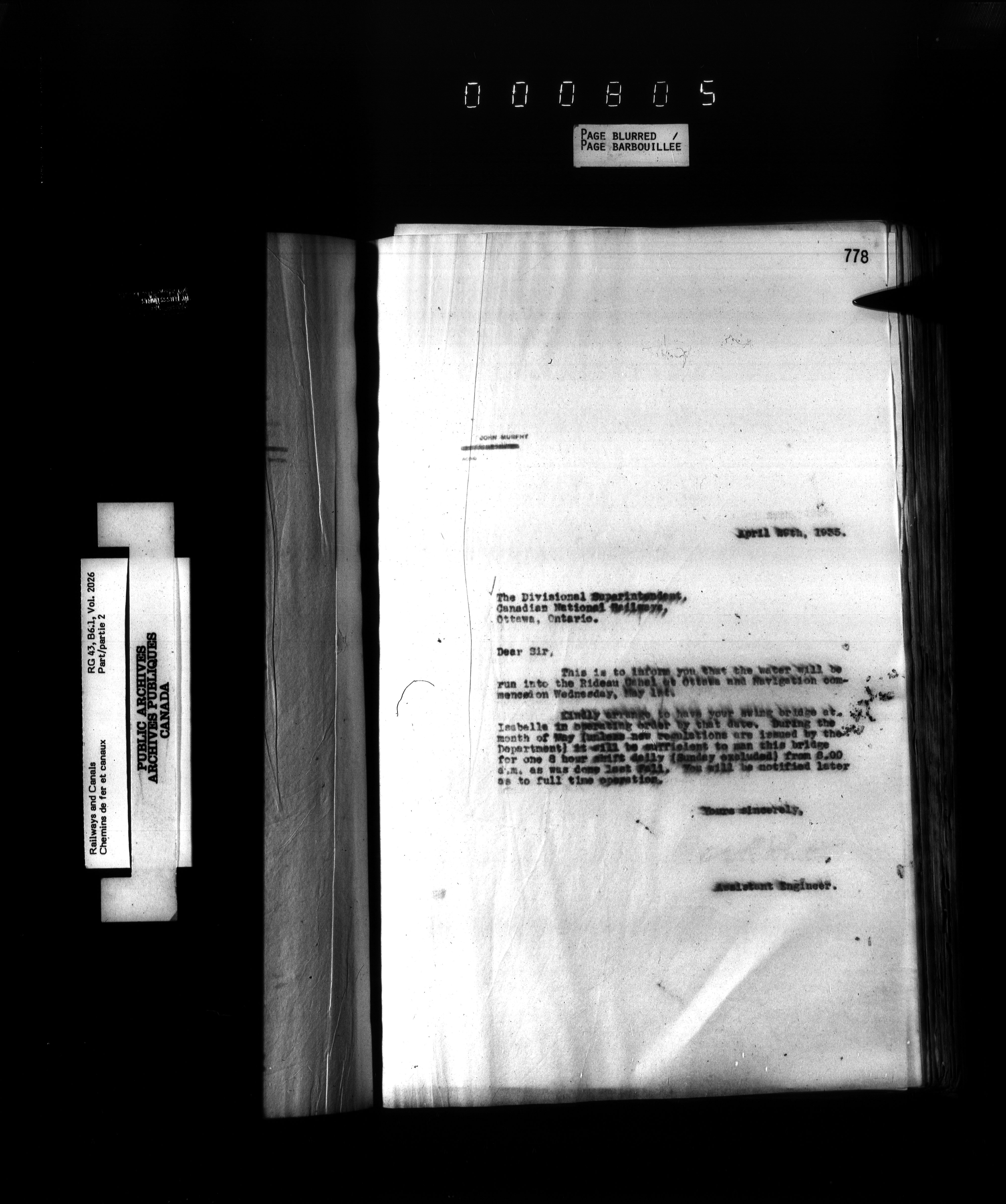 Department of Railways and Canals, Superintending Engineer of the Rideau Canal : Letterbooks : T-2771