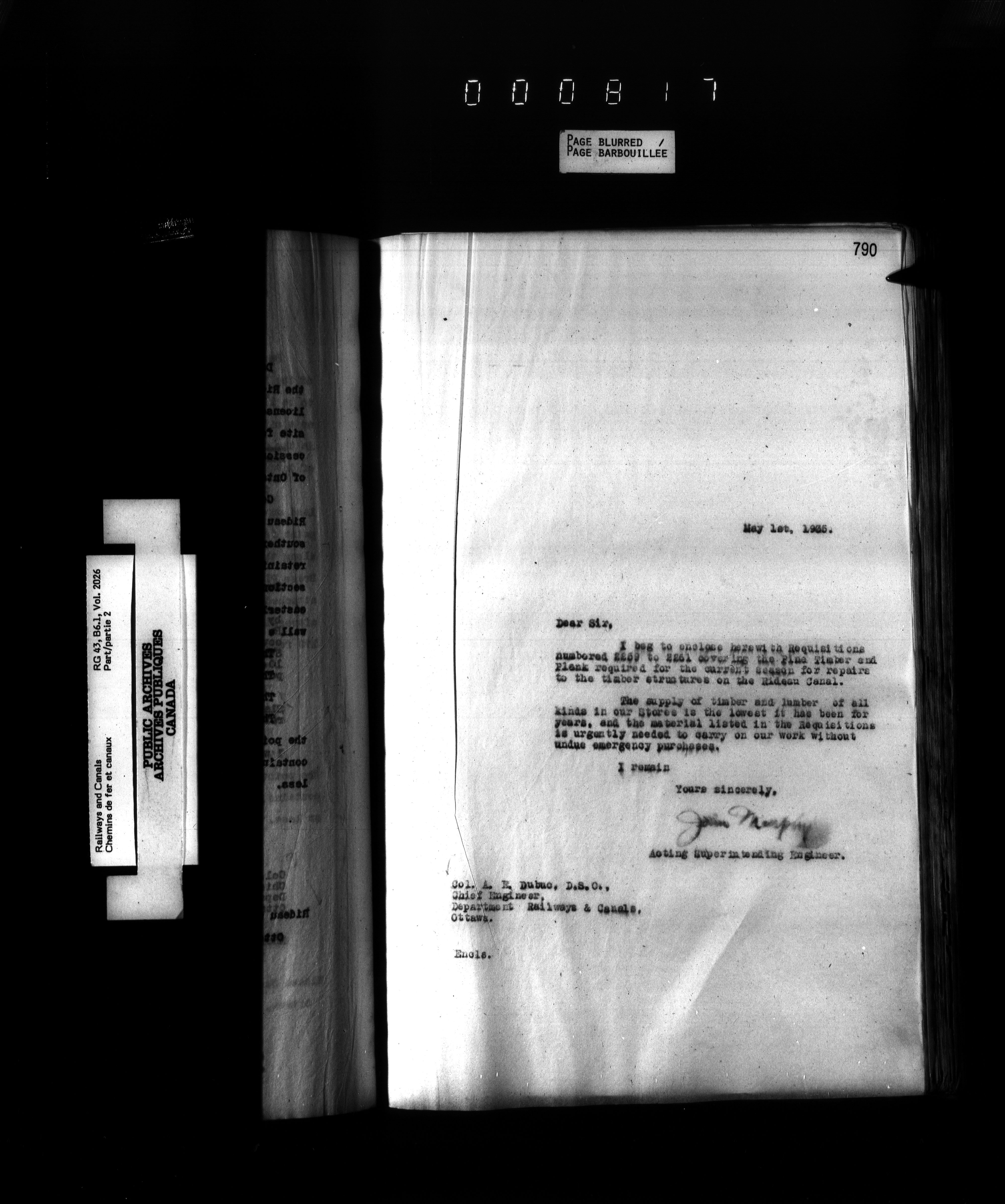 Department of Railways and Canals, Superintending Engineer of the Rideau Canal : Letterbooks : T-2771
