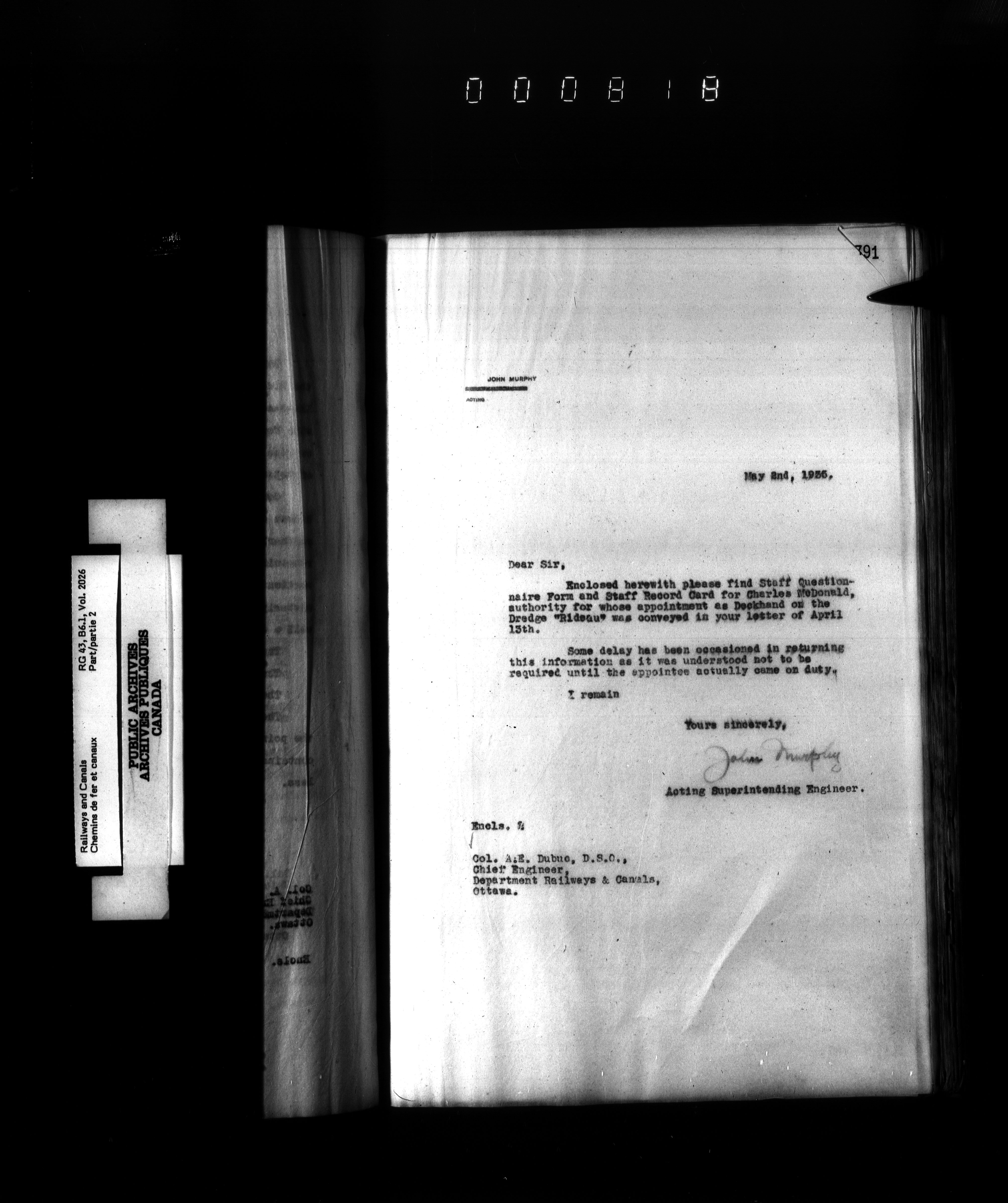 Department of Railways and Canals, Superintending Engineer of the Rideau Canal : Letterbooks : T-2771