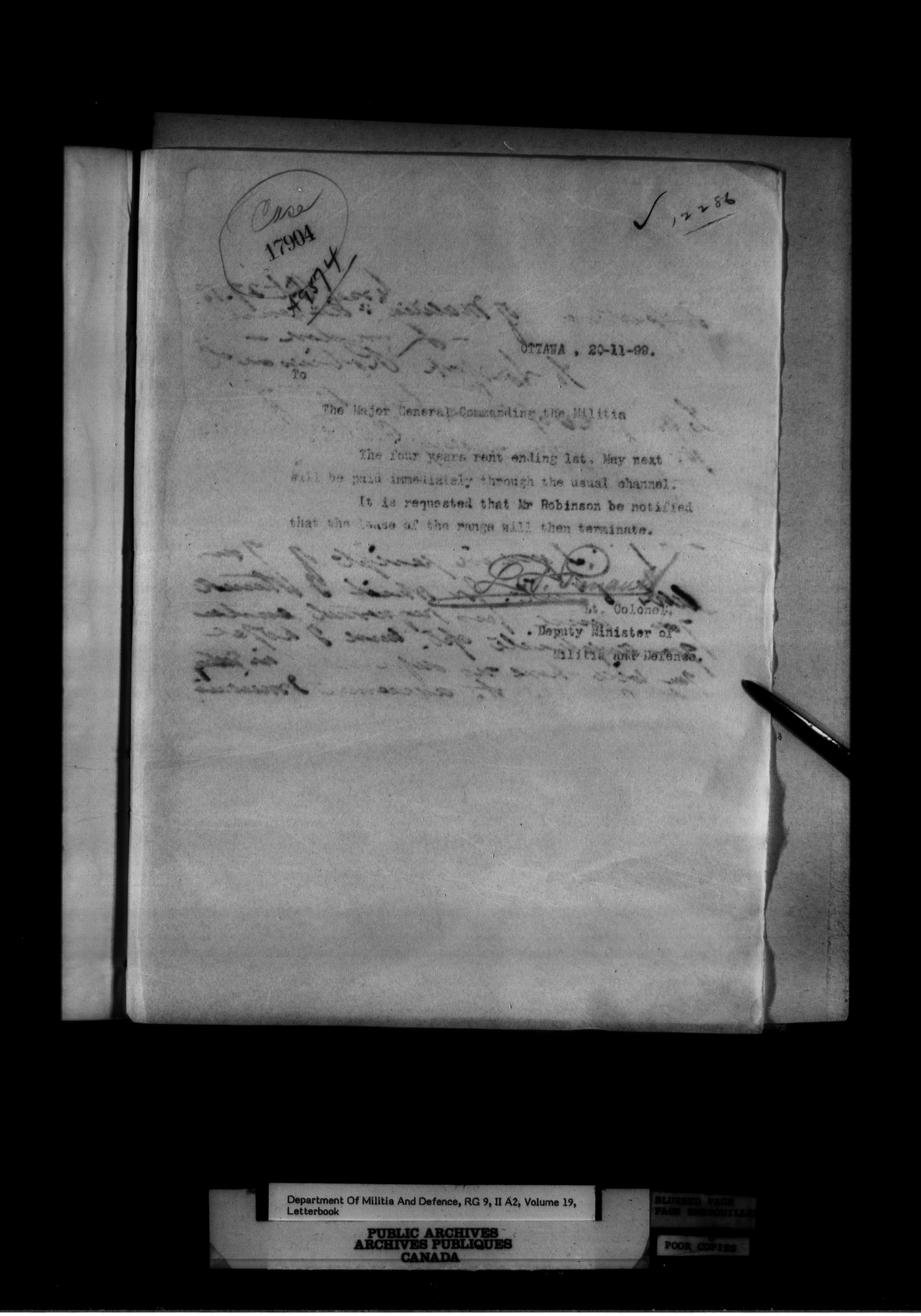 Department of Militia and Defence : reports and memoranda of the Deputy Minister's office, 1867-1907 : T-278