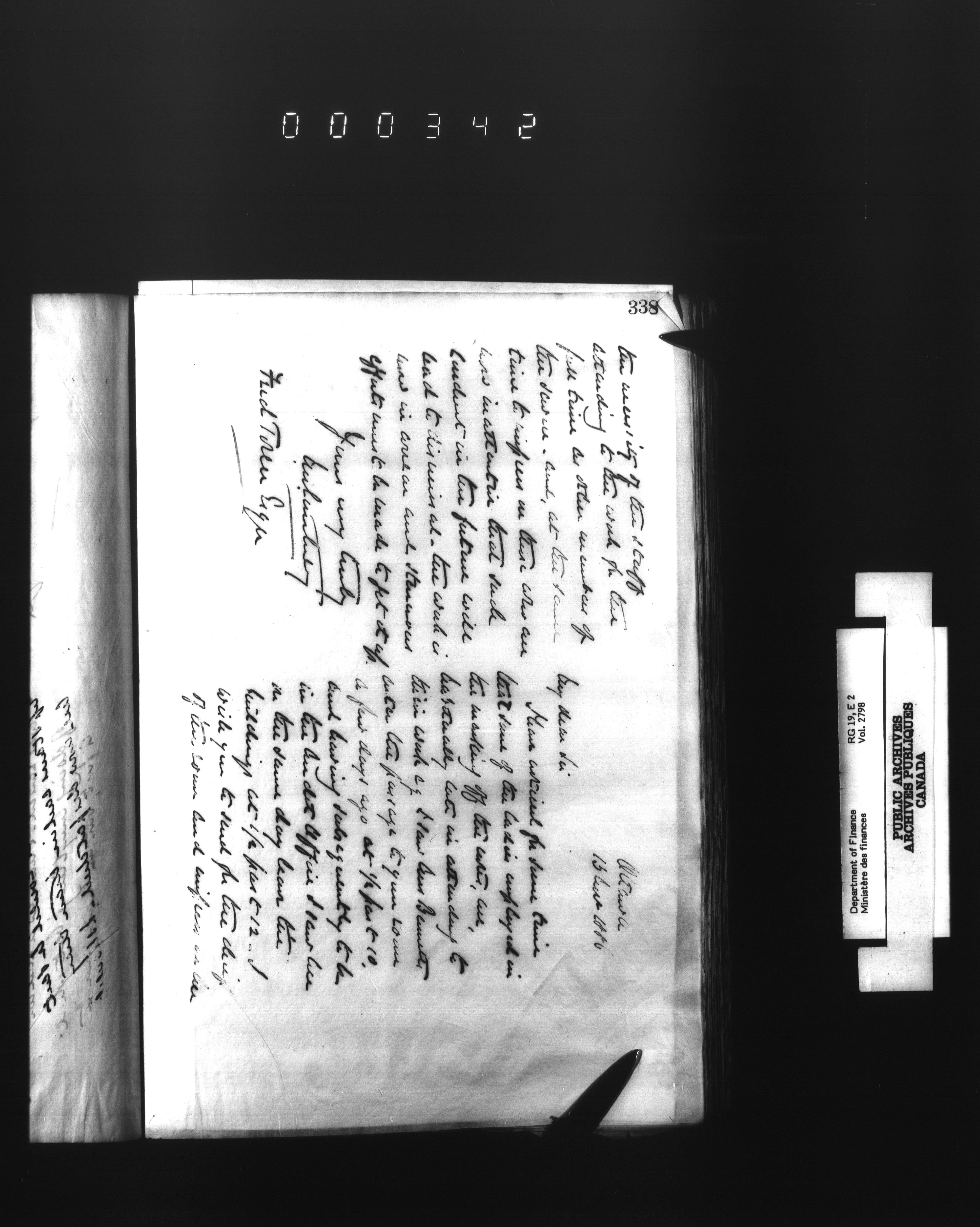 Outgoing correspondence of the office of the Deputy-Inspector General and Deputy Minister of Finance - 2785