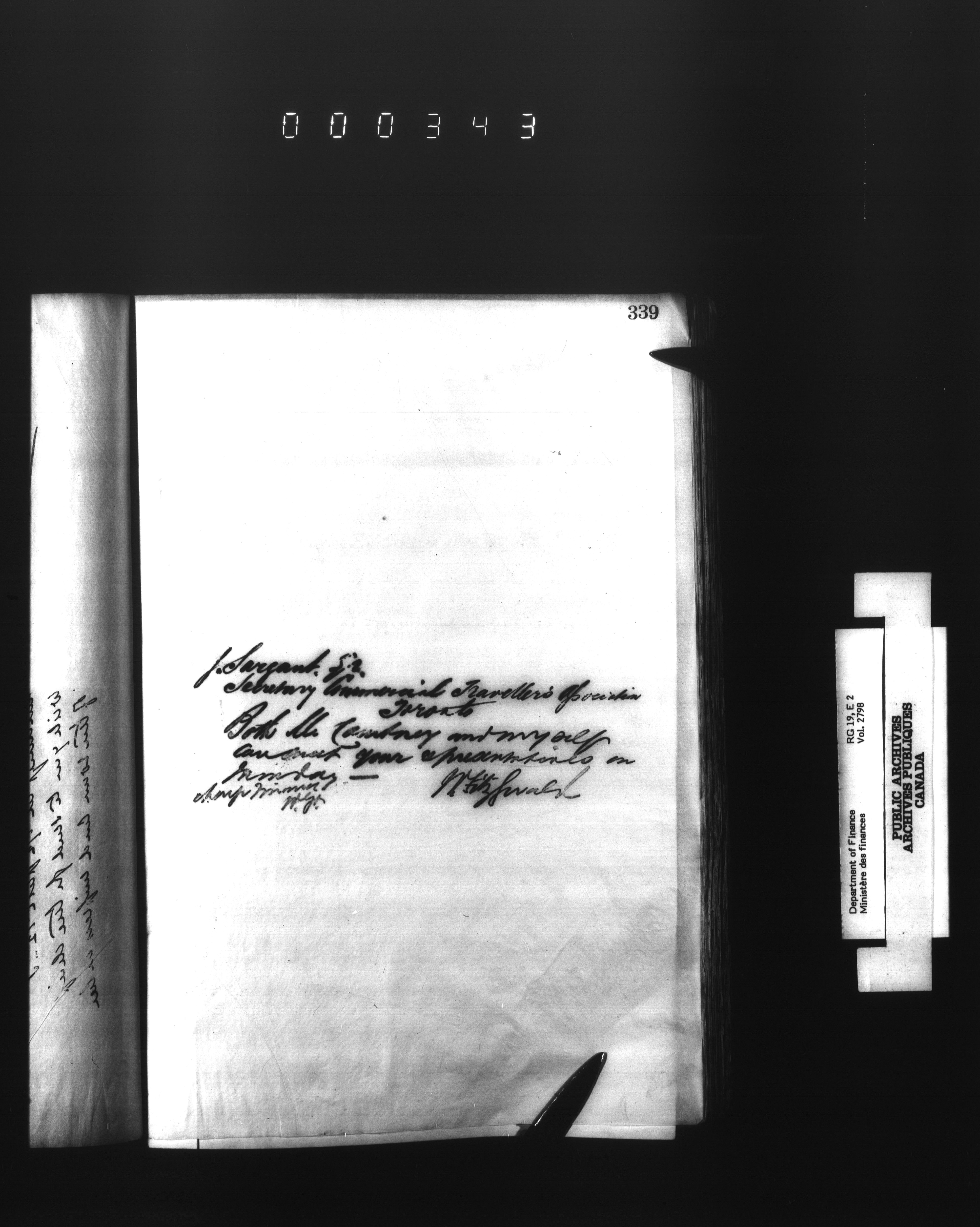 Outgoing correspondence of the office of the Deputy-Inspector General and Deputy Minister of Finance - 2785