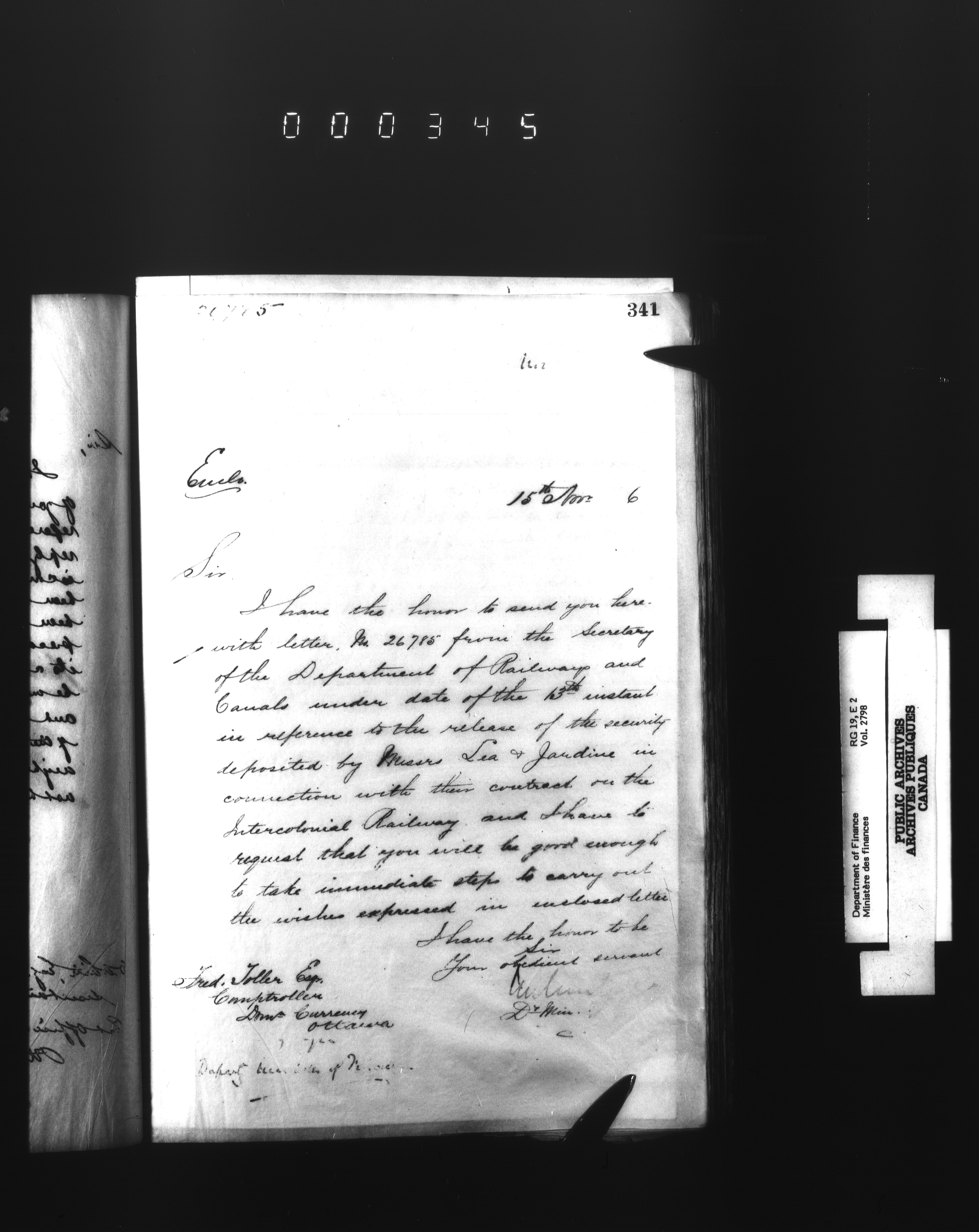 Outgoing correspondence of the office of the Deputy-Inspector General and Deputy Minister of Finance - 2785