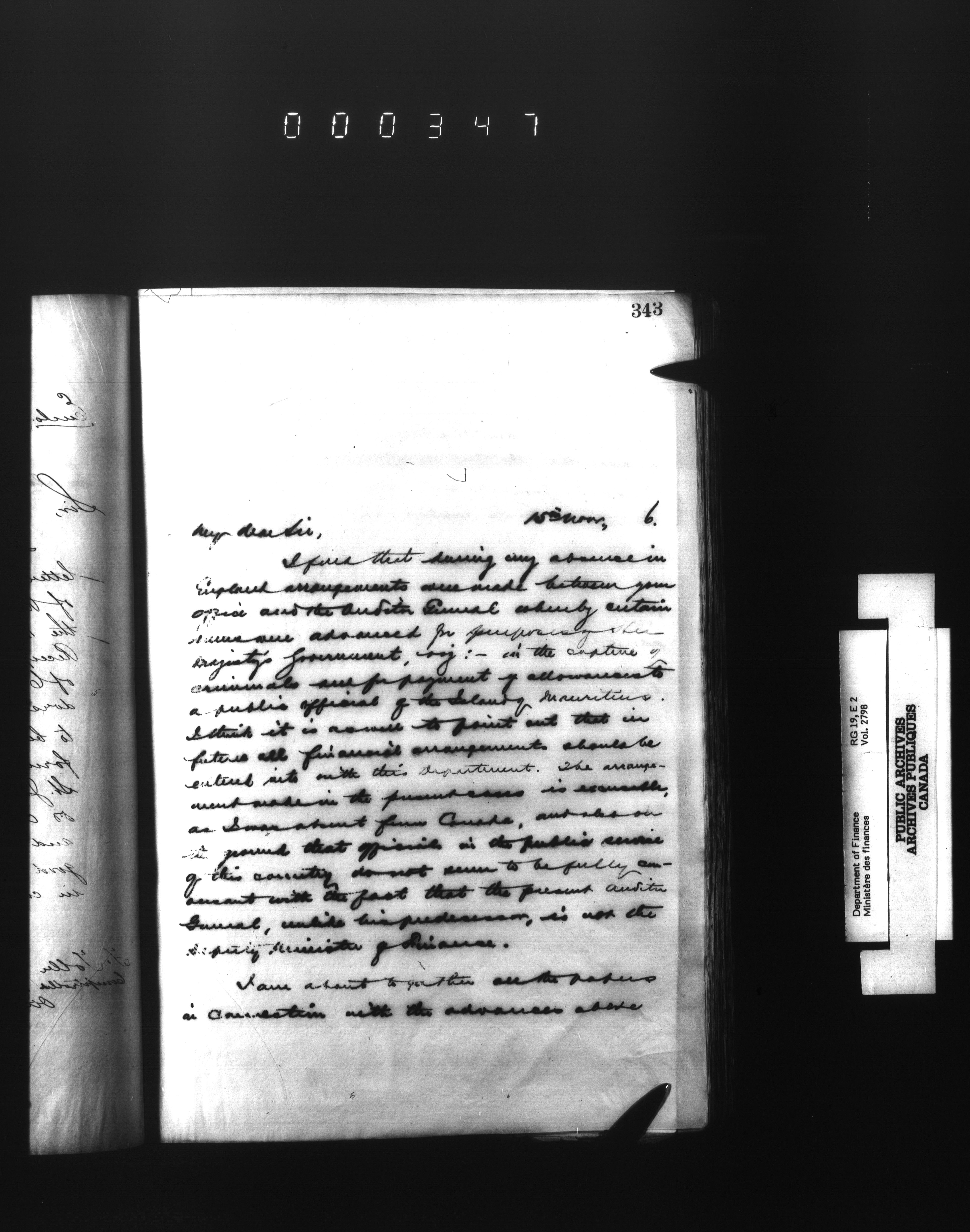 Outgoing correspondence of the office of the Deputy-Inspector General and Deputy Minister of Finance - 2785