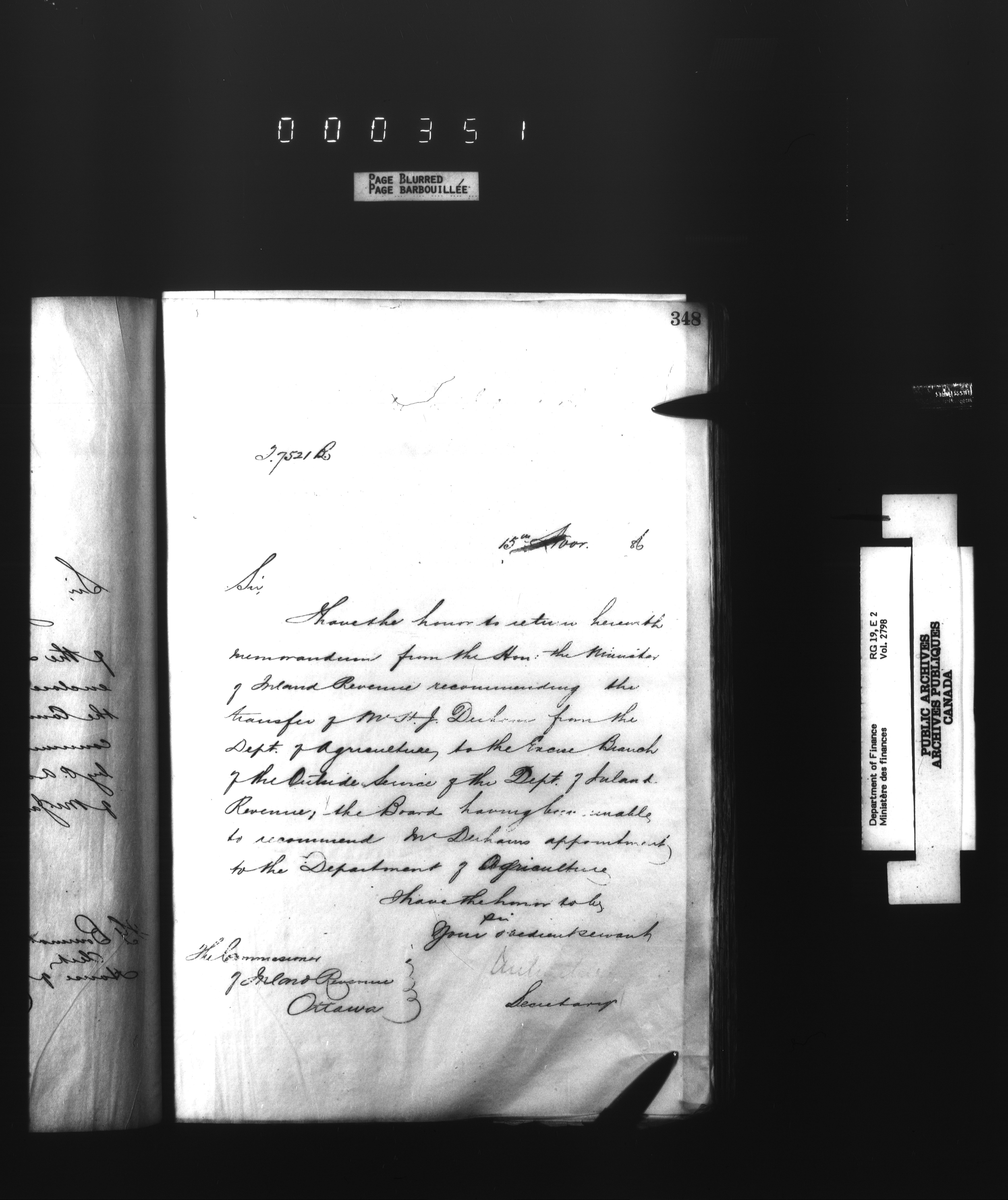 Outgoing correspondence of the office of the Deputy-Inspector General and Deputy Minister of Finance - 2785
