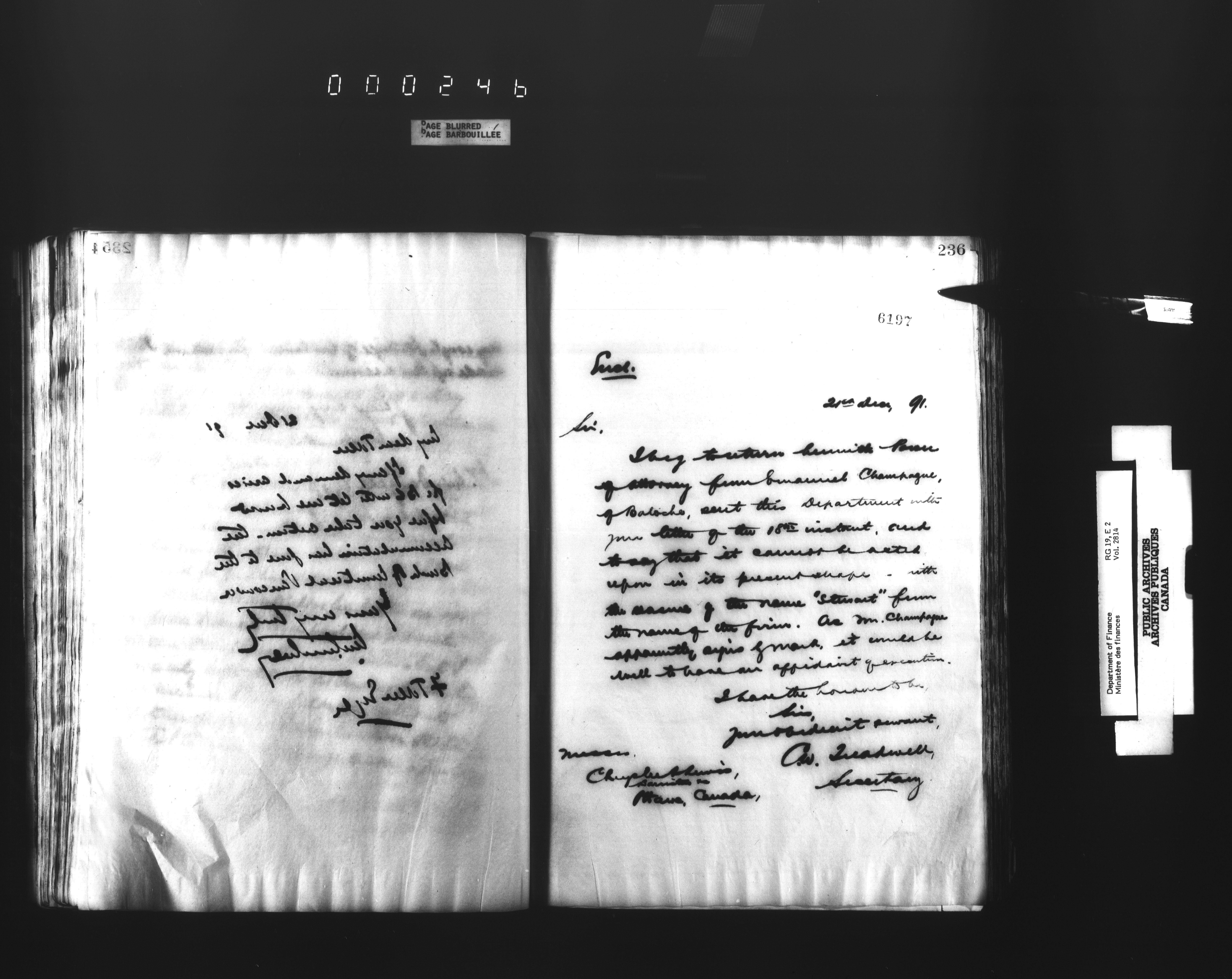 Outgoing correspondence of the office of the Deputy-Inspector General and Deputy Minister of Finance - 2803
