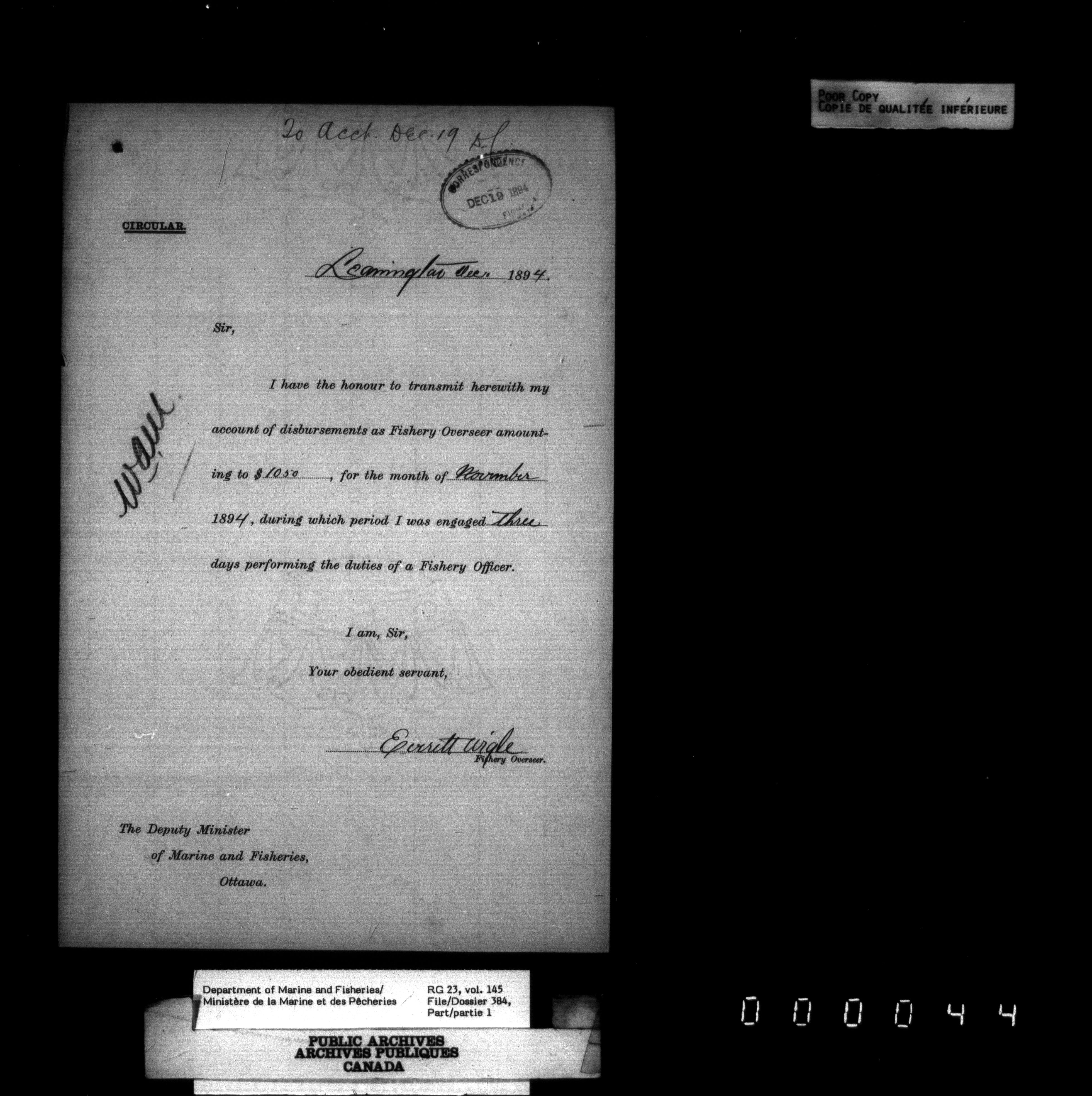 Fisheries Branch Registry files - 2833