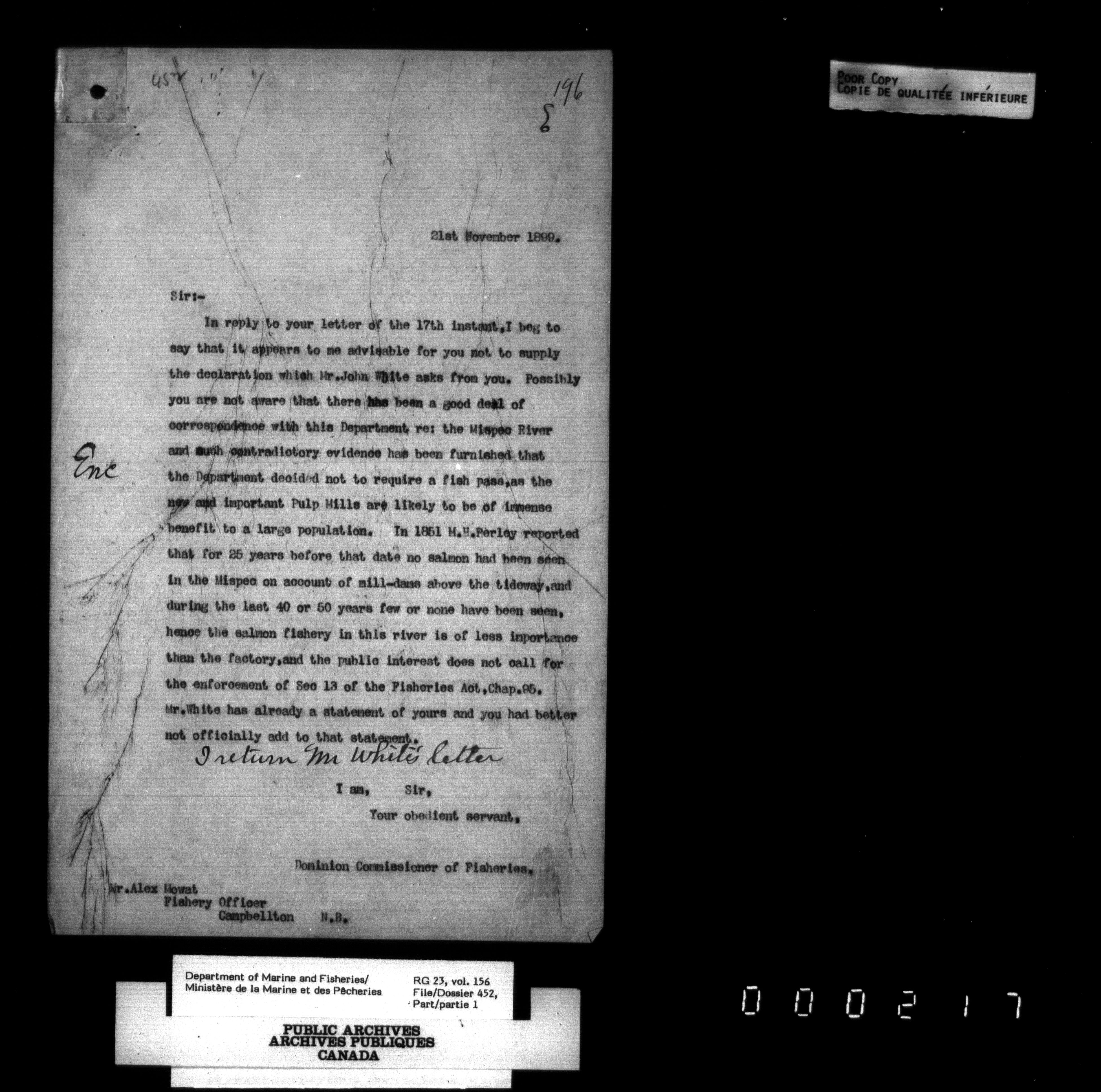Fisheries Branch Registry files - 2845