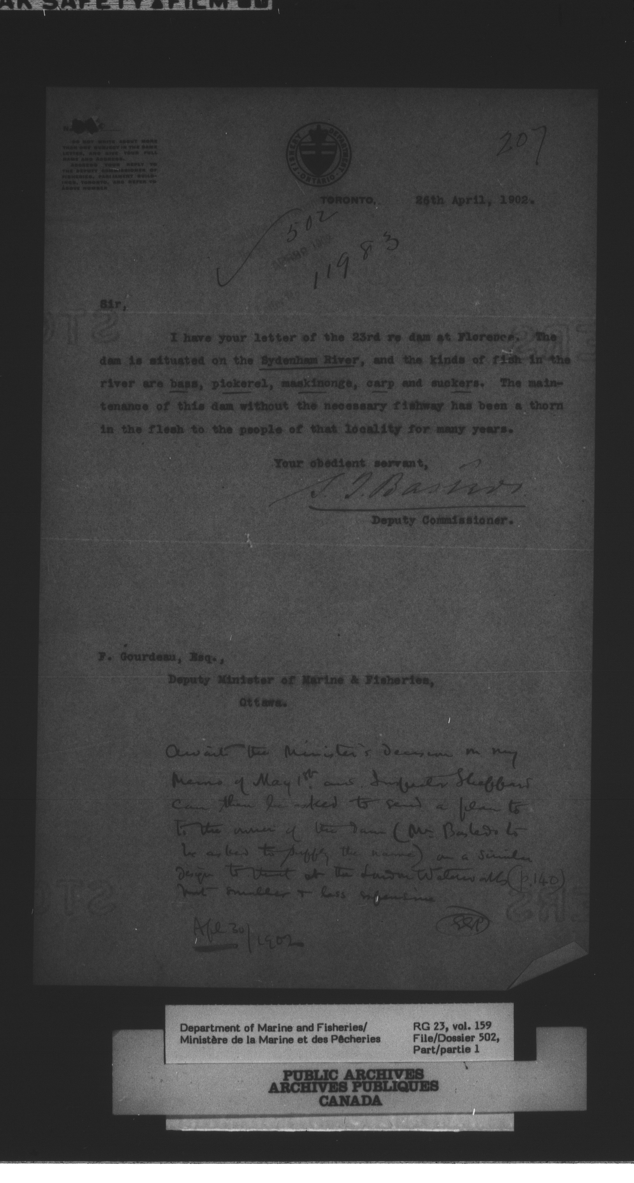 Fisheries Branch Registry files - 2847