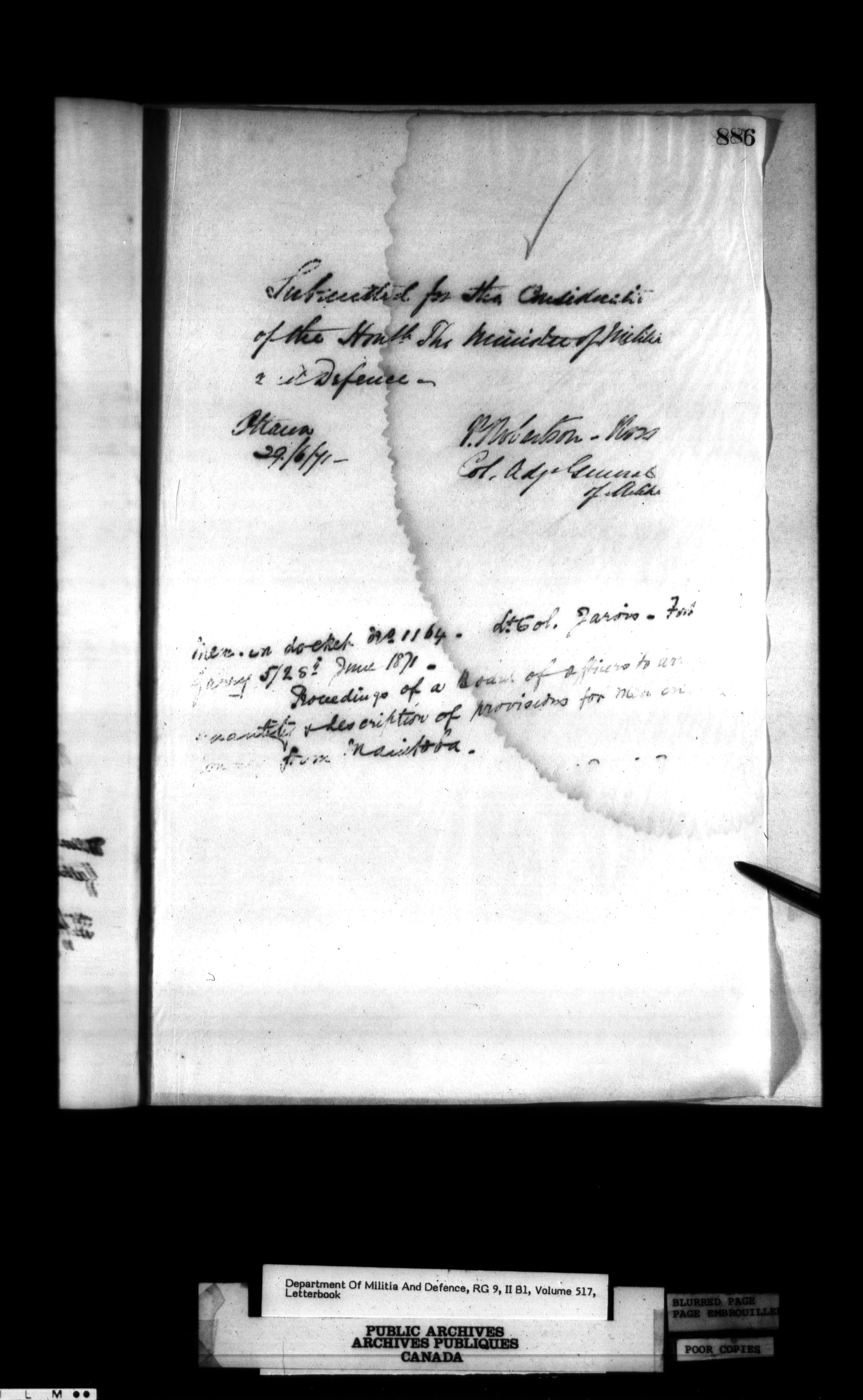 Correspondence of the General Officer Commanding (GOC) of the Canadian Militia and his predecessor, the Adjutant General - 285