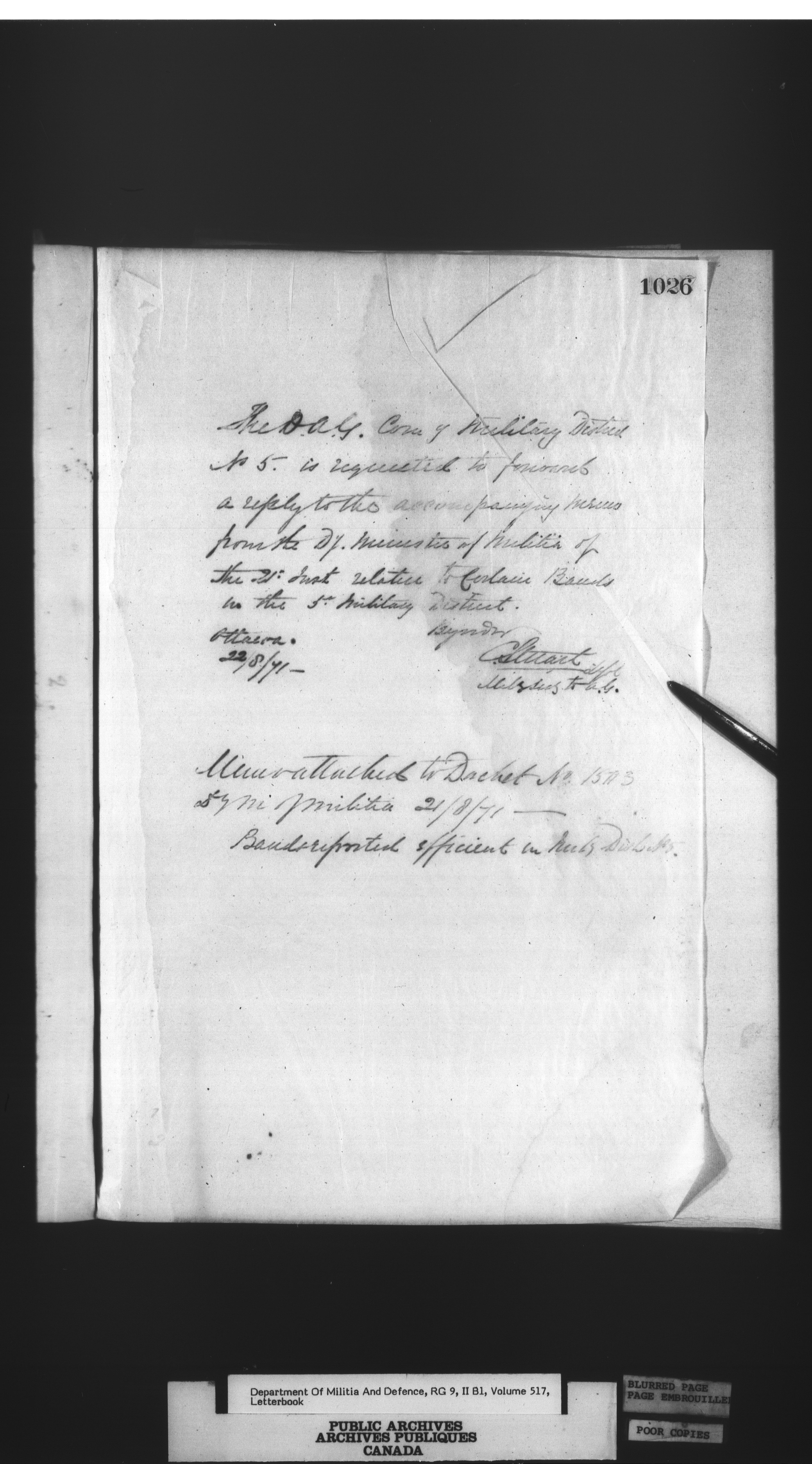 Correspondence of the General Officer Commanding (GOC) of the Canadian Militia and his predecessor, the Adjutant General - 286