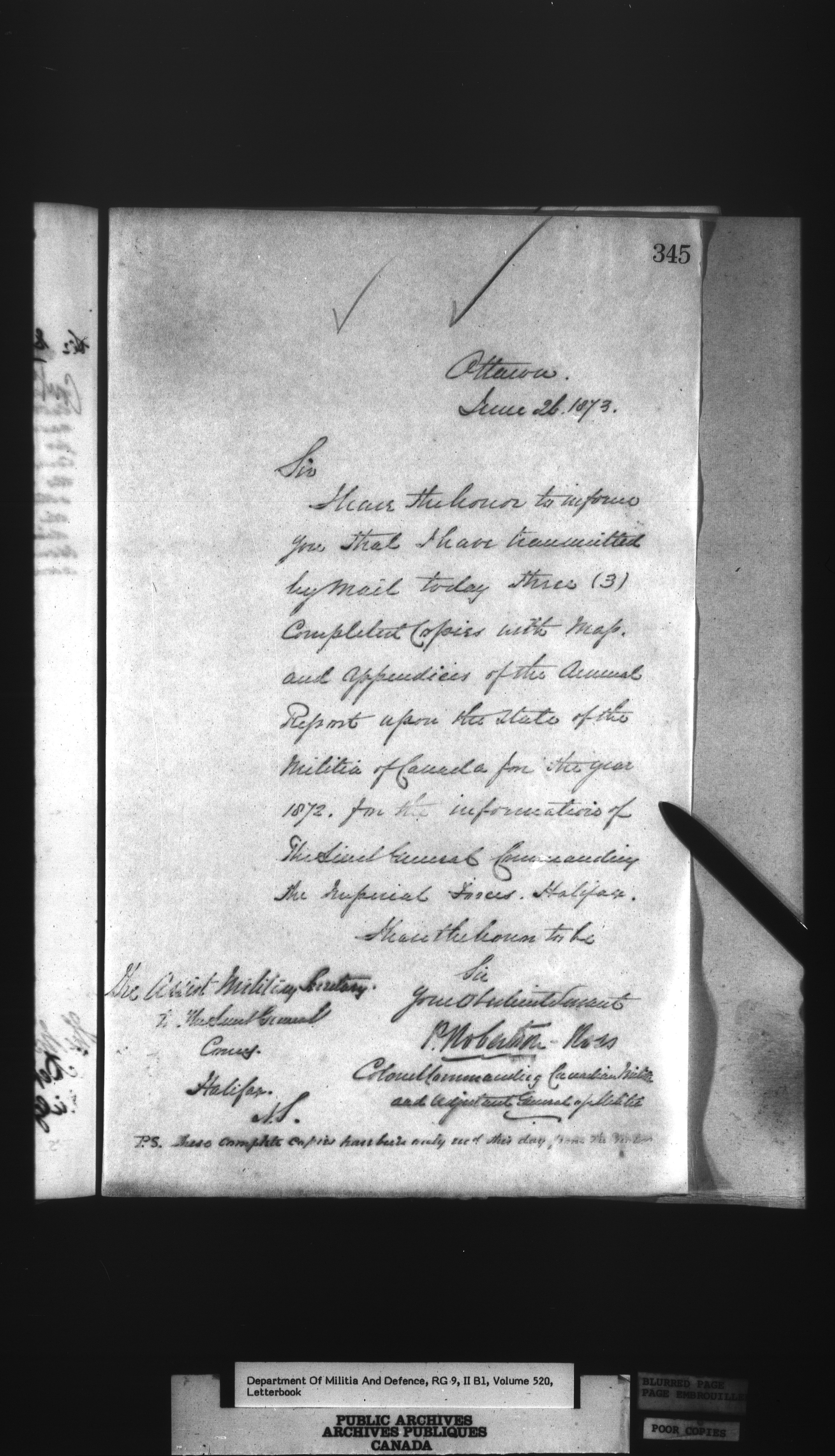 Correspondence of the General Officer Commanding (GOC) of the Canadian Militia and his predecessor, the Adjutant General - 288