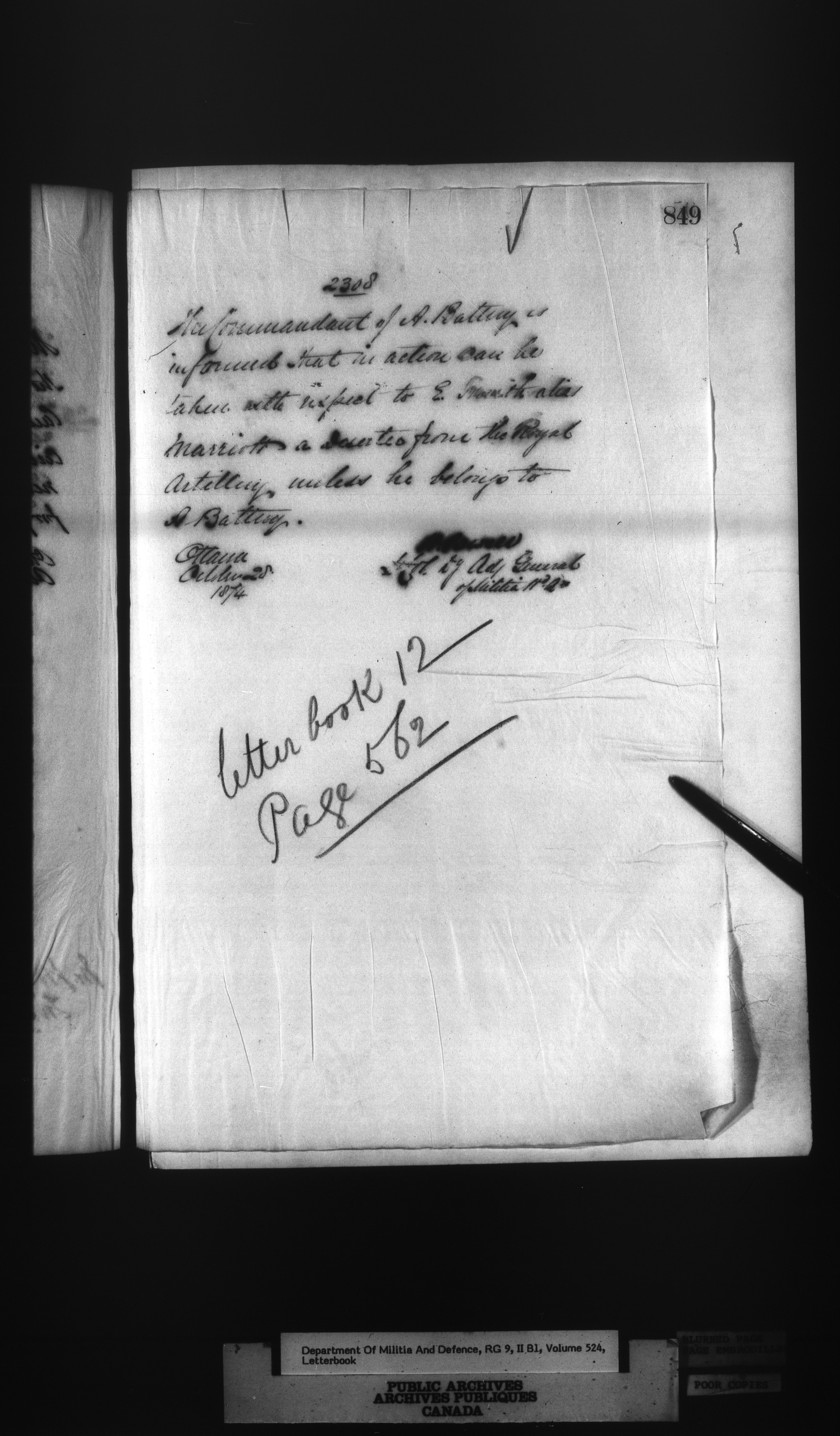 Correspondence of the General Officer Commanding (GOC) of the Canadian Militia and his predecessor, the Adjutant General - 290