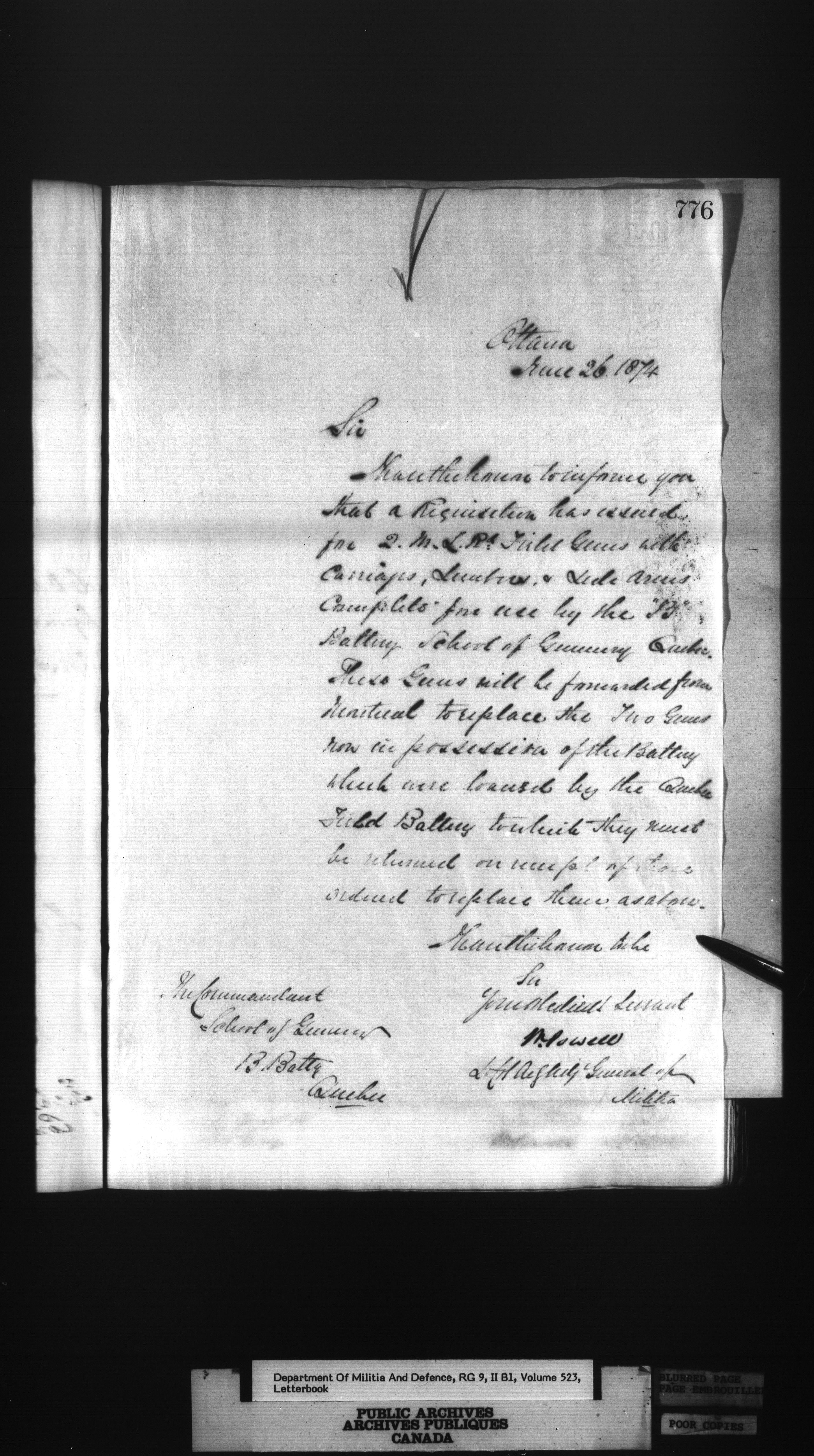 Correspondence of the General Officer Commanding (GOC) of the Canadian Militia and his predecessor, the Adjutant General - 290